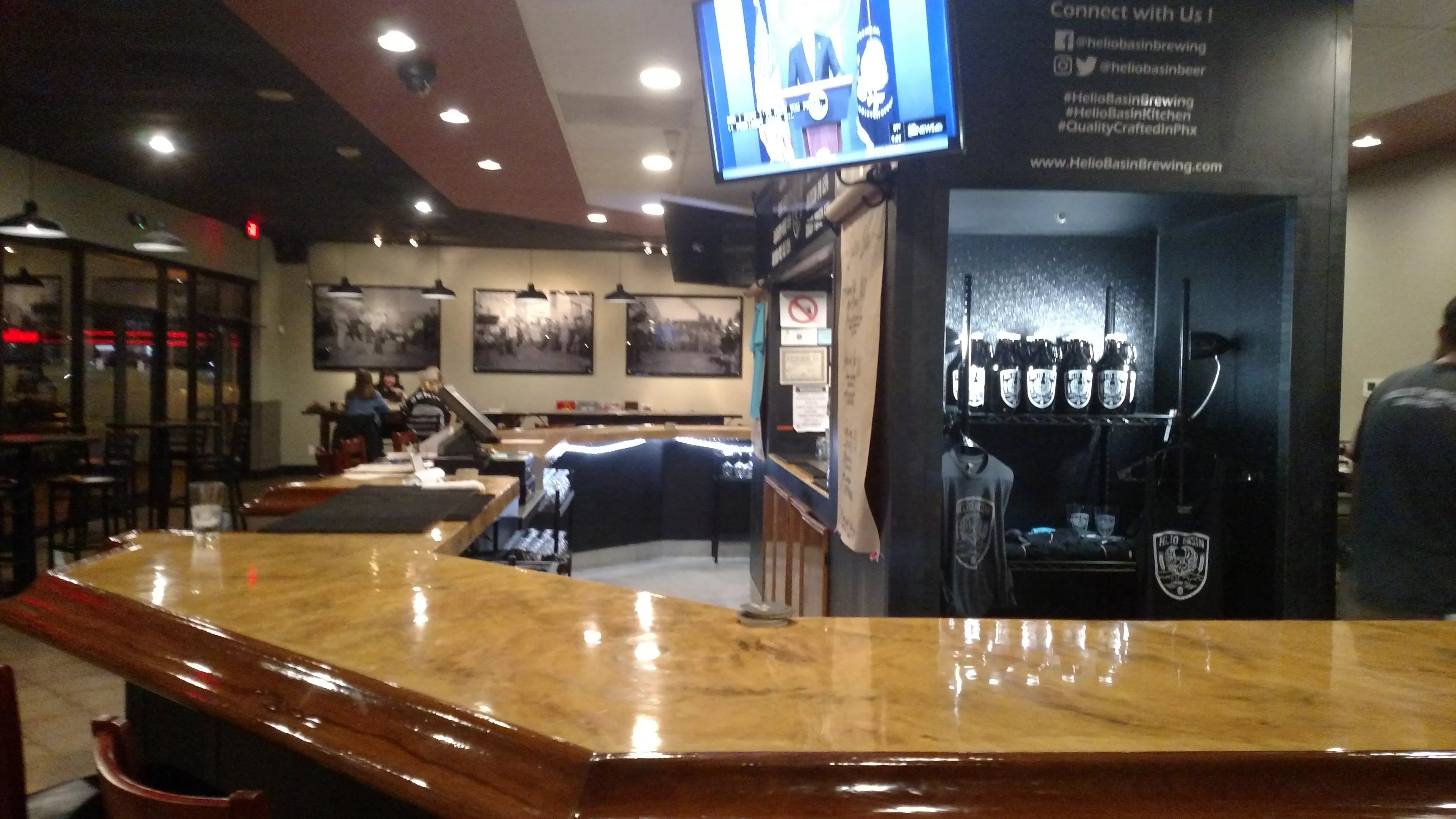 Walk into Helio Basin Brewery at 3935 East Thomas Road and you’re effectively in the middle of the action, with the well-lit room separated by communal seating to the left, the pentagonal bar directly in front of you and individual tables to the right facing the shiny clean brewery.