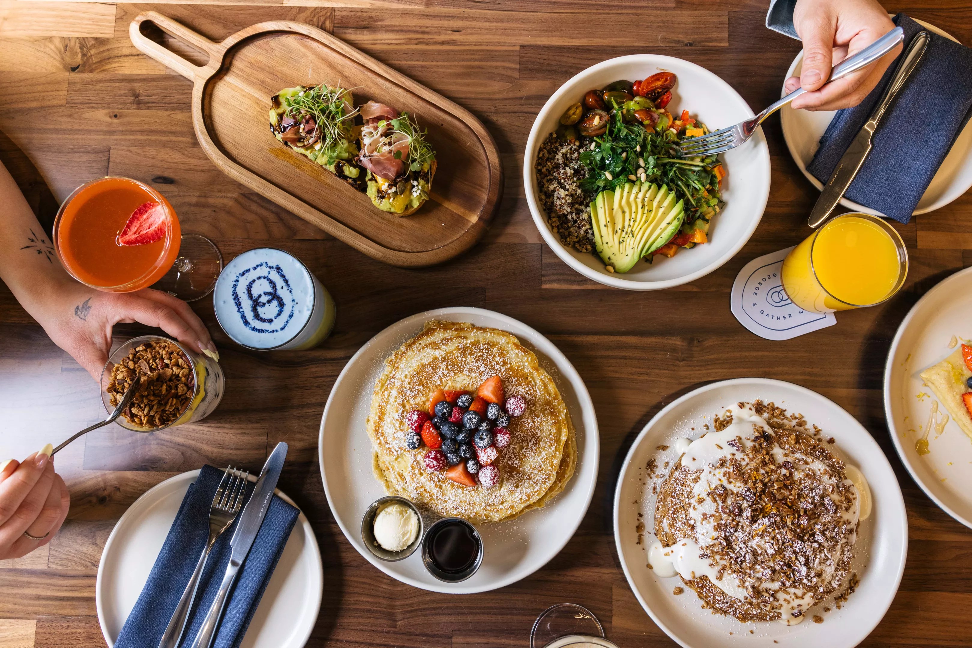 George & Gather will serve breakfast options including avocado toast, pancakes, breakfast bowls and more.