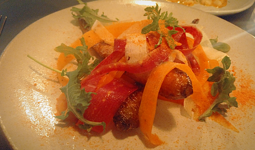 Roasted carrots was a recent mid-course offering at Restaurant Progress. The plate featured four variations on the vegetable.