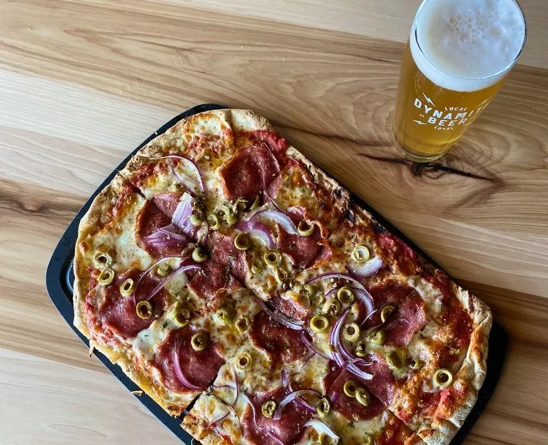 Dynamite Beer Co.’s food menu includes “stonebreads,” pizzas made on tandoor-cooked bread.