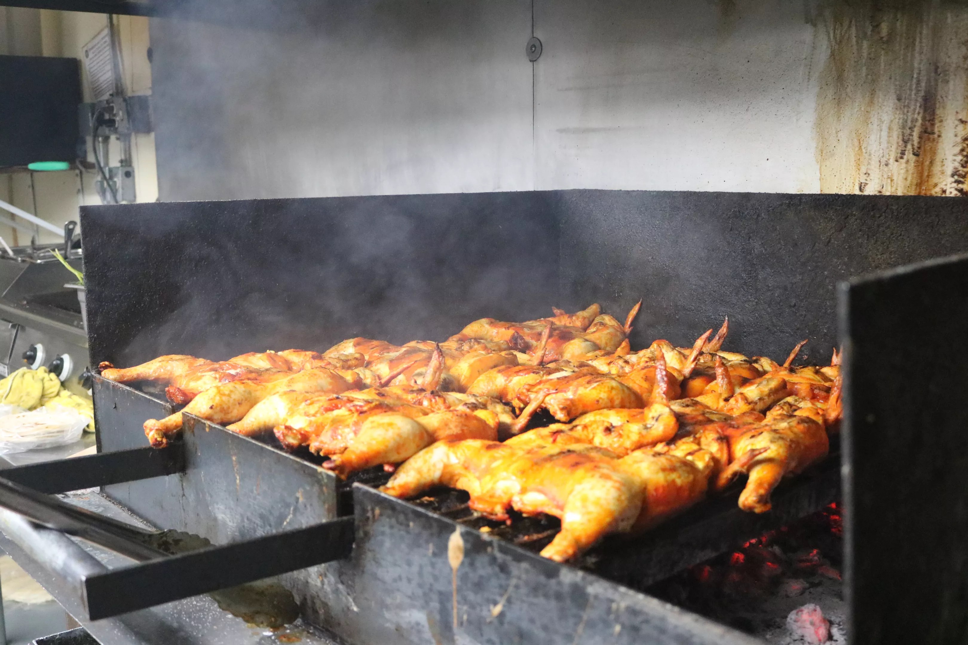 He and his sisters served pollo asado, carne asada, beef ribs, and al pastor in portable stainless steel parrillas, a type of grill that contains smoldering charcoals to keep the food warm.