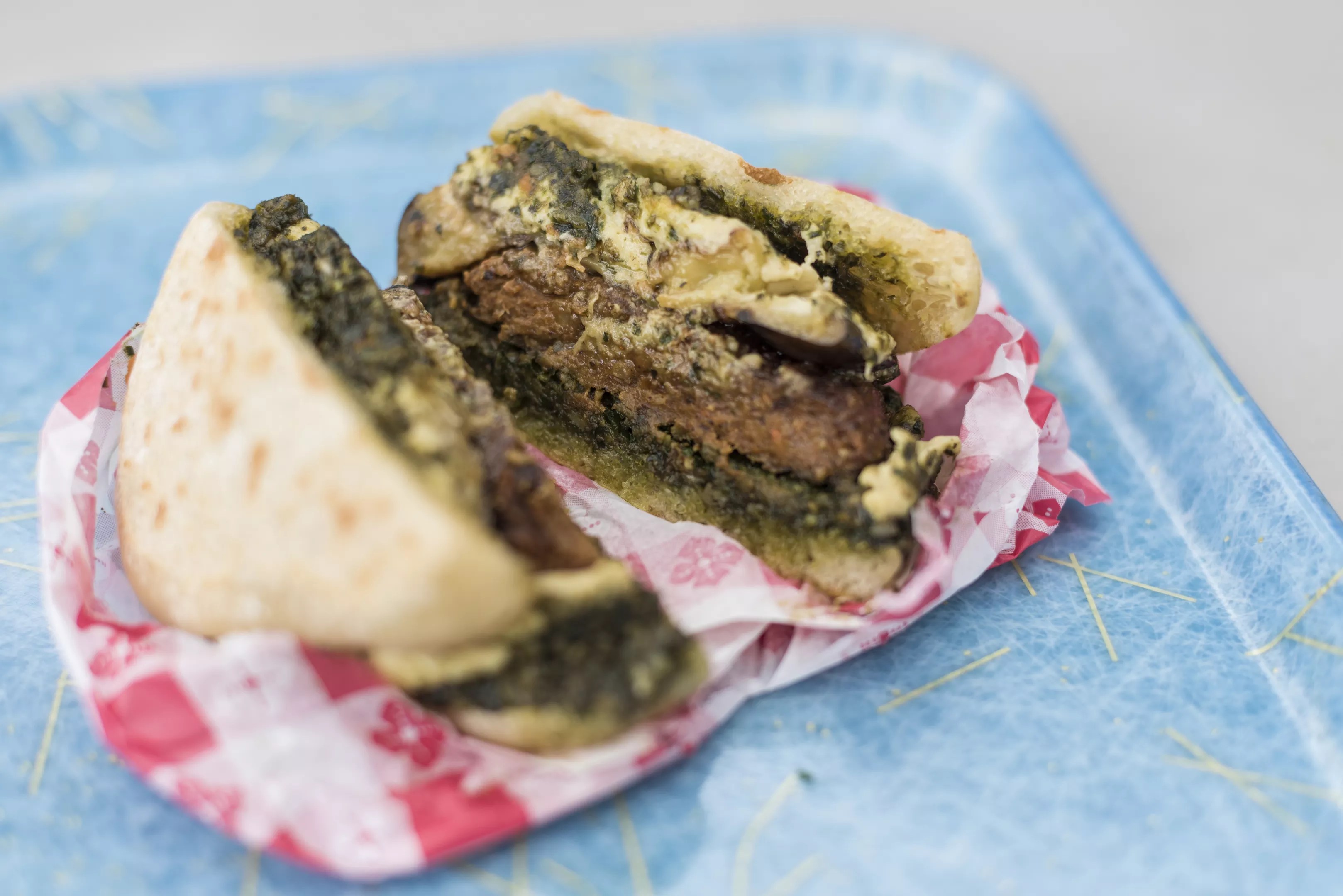 “The burgers have a little notoriety. They’re maybe not for everyone, but the people that are into them are really into them. They’re not trying to mimic meat. They’re not textured soy protein,” Shapiro says. “They’re made with a ton of unprocessed veggies, grains, beans, and spices. People always have a hard time when I ask them what it tastes like. It doesn’t taste like a black bean patty. It doesn’t taste like a Beyond Burger or like an Impossible Burger.”
