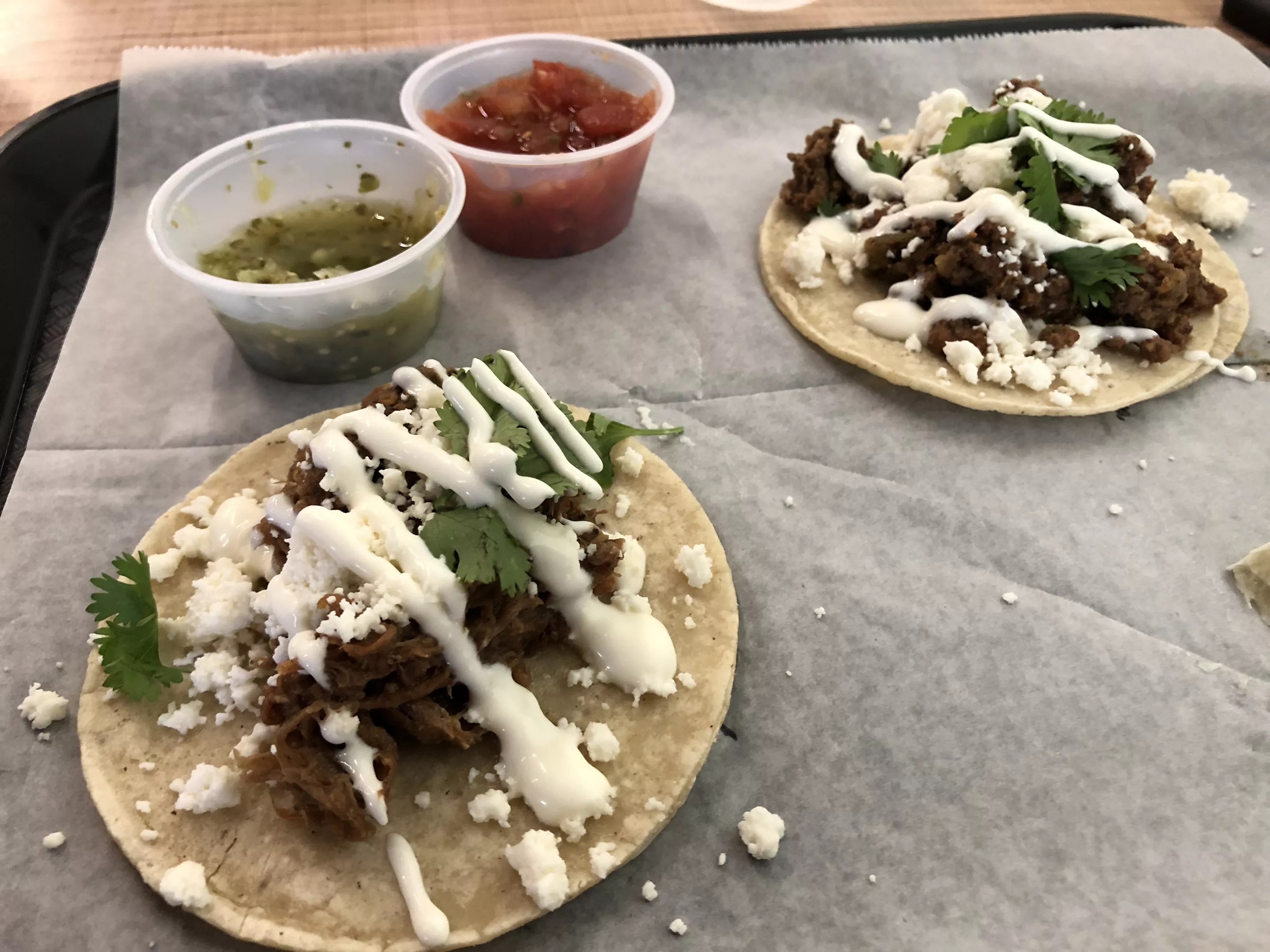Green chile beef and pork tacos from Hatch-It.