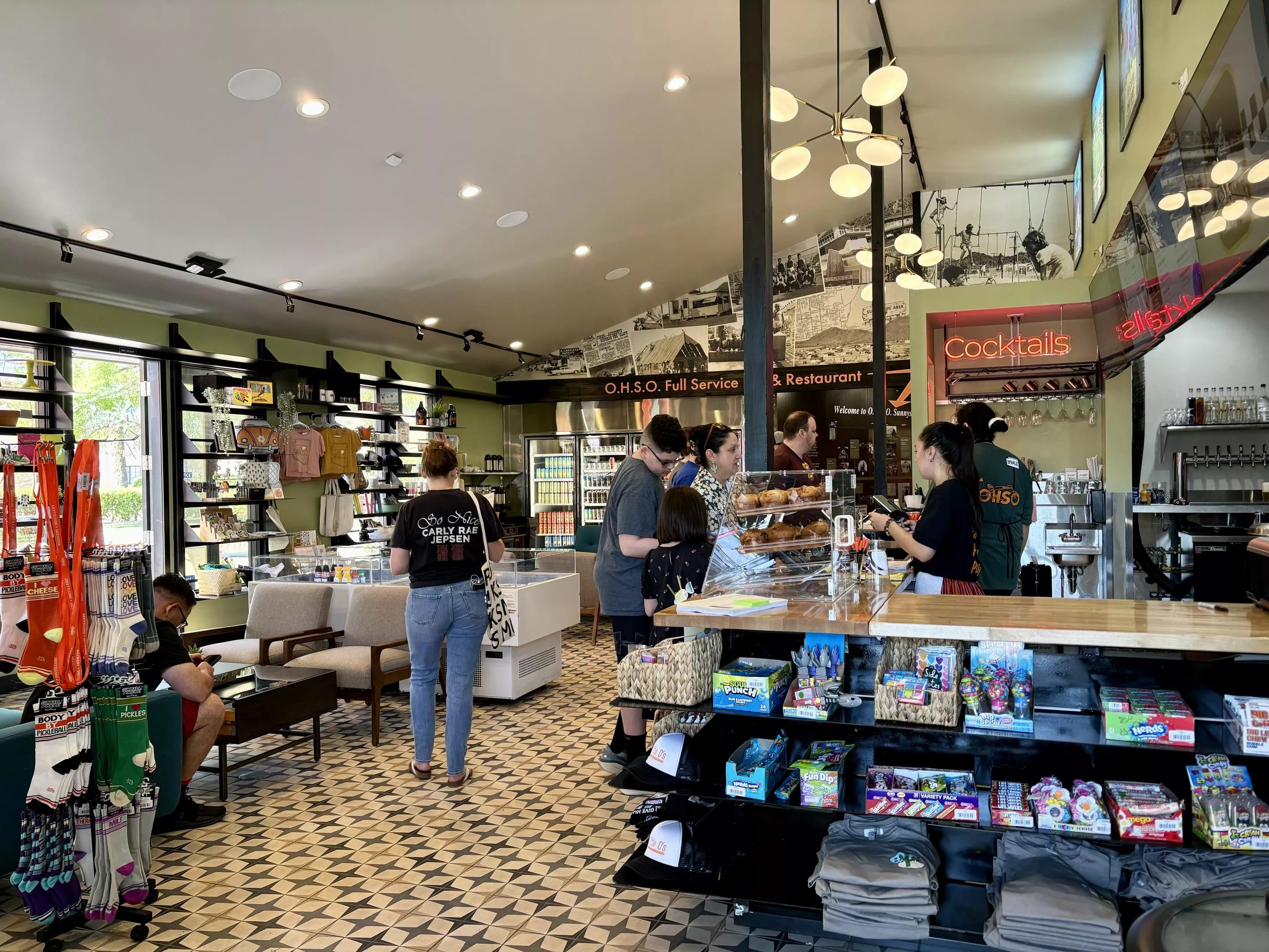 Customers walk through Little O’s Market to get to the entrance of O.H.S.O., a full-service restaurant.