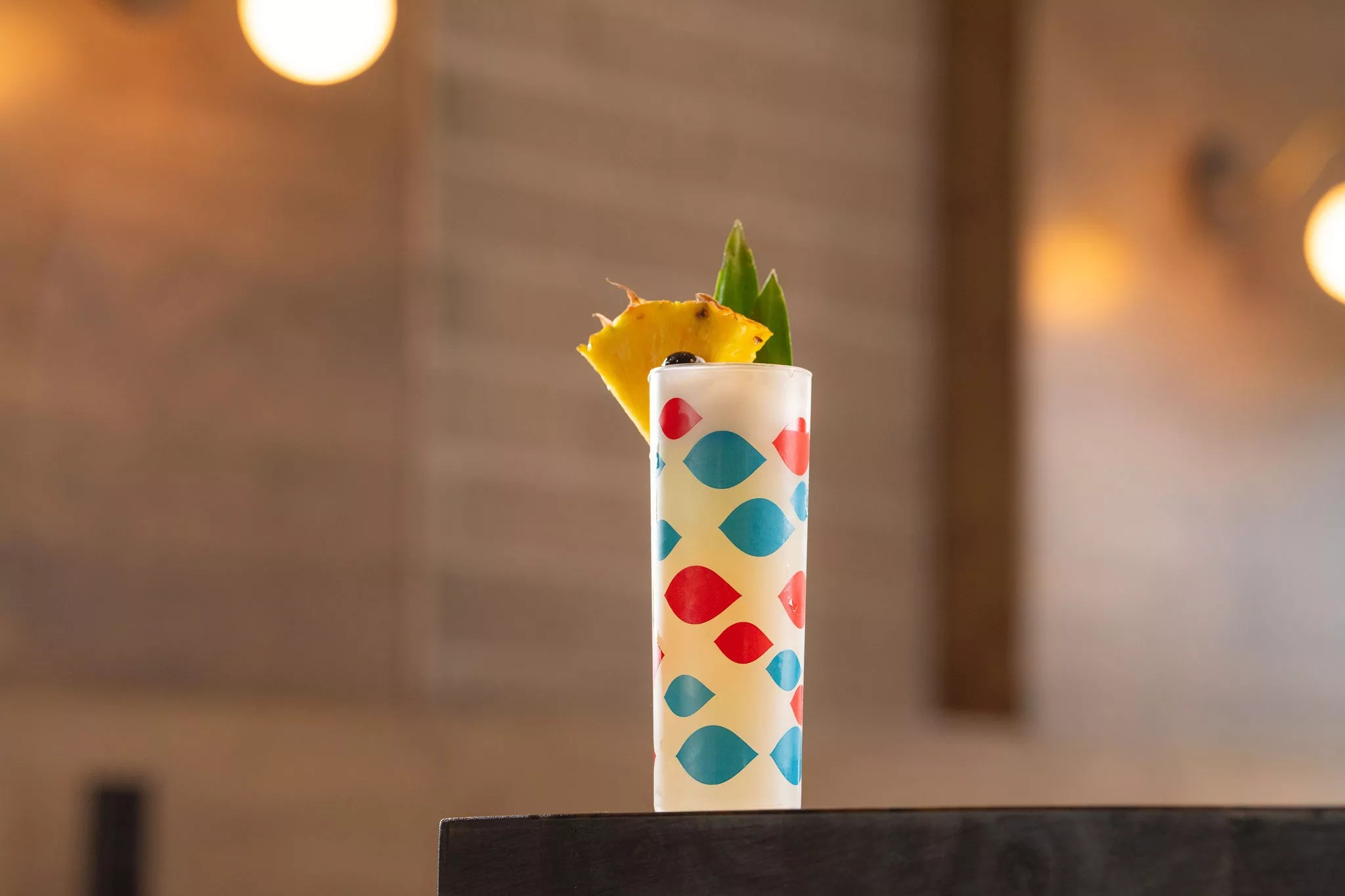 Inspired by a pineapple upside-down cake and served in a Dairy Queen glass from the ’60s, The Queen is a craft cocktail made with vanilla vodka, amaretto, pineapple juice, grenadine and garnished with a pineapple slice and cherry.