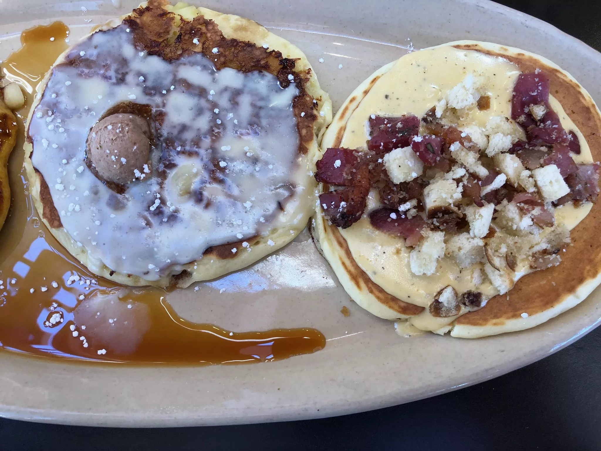 Other equally creative pancakes can be had. If you want, you can sub in French toast for one of your pancakes, though this option isn’t listed on the menu.