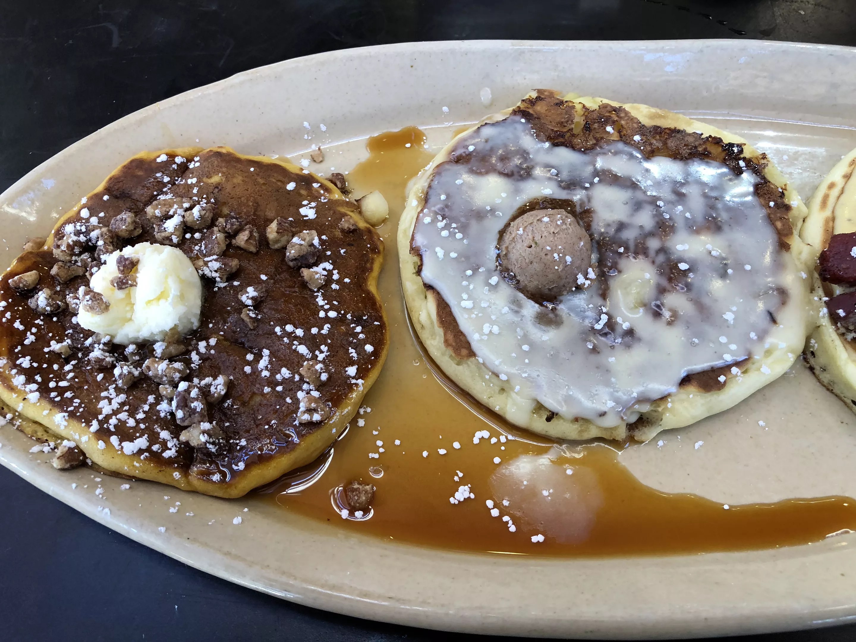 But what if you could order three kinds of pancake on one plate? Suddenly, rounding out the blueberry with two other kinds of pancakes might even become more appealing, in theory, than huevos rancheros, a breakfast burrito, or chilaquiles.