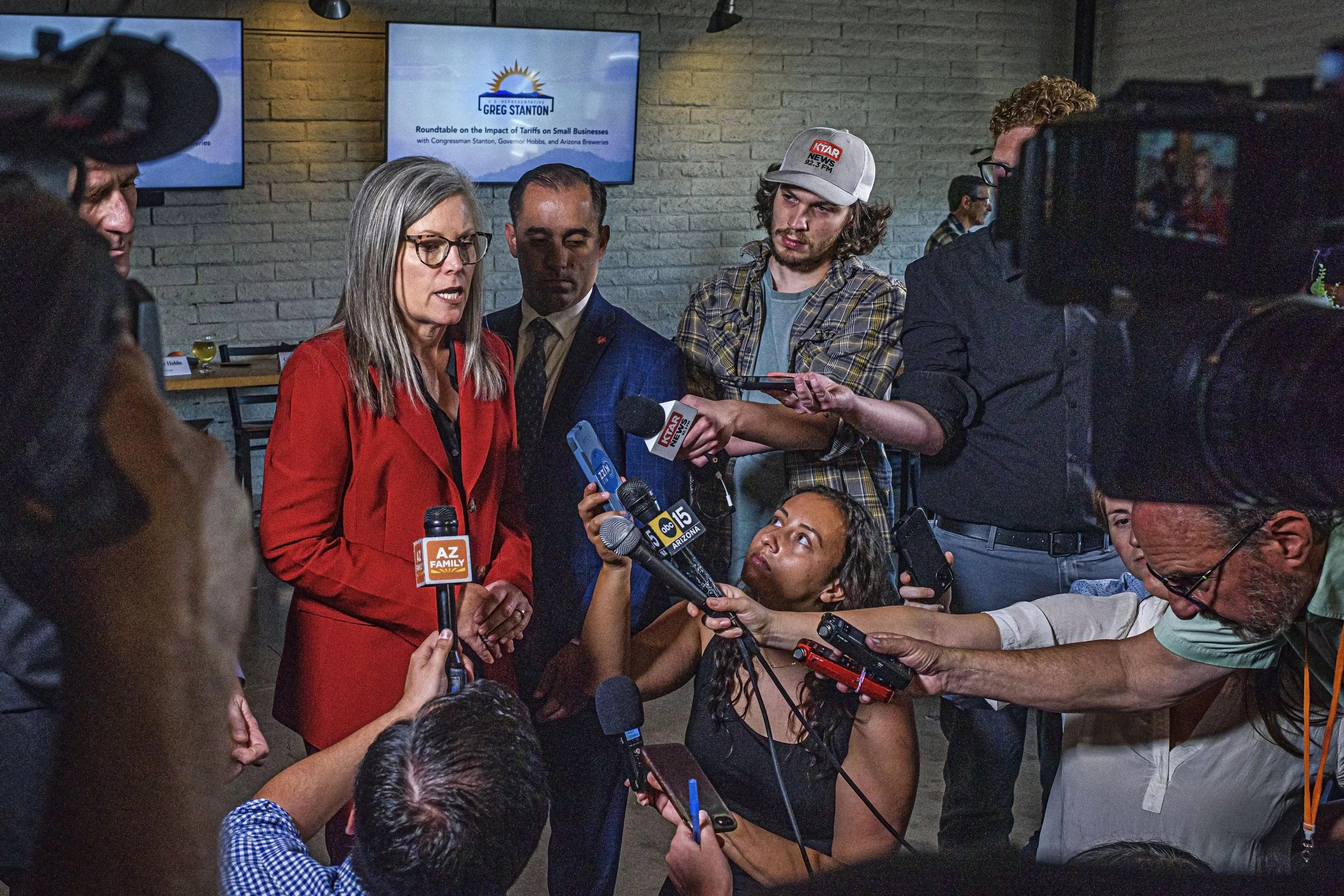 Gov. Katie Hobbs addressed questions from reporters and local business owners at the Tempe roundtable event.