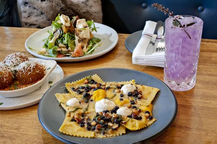Butternut squash-filled Agnolotti, arancini, truffled panzanella, and cocktails like the Italian Bird are available at Parma.