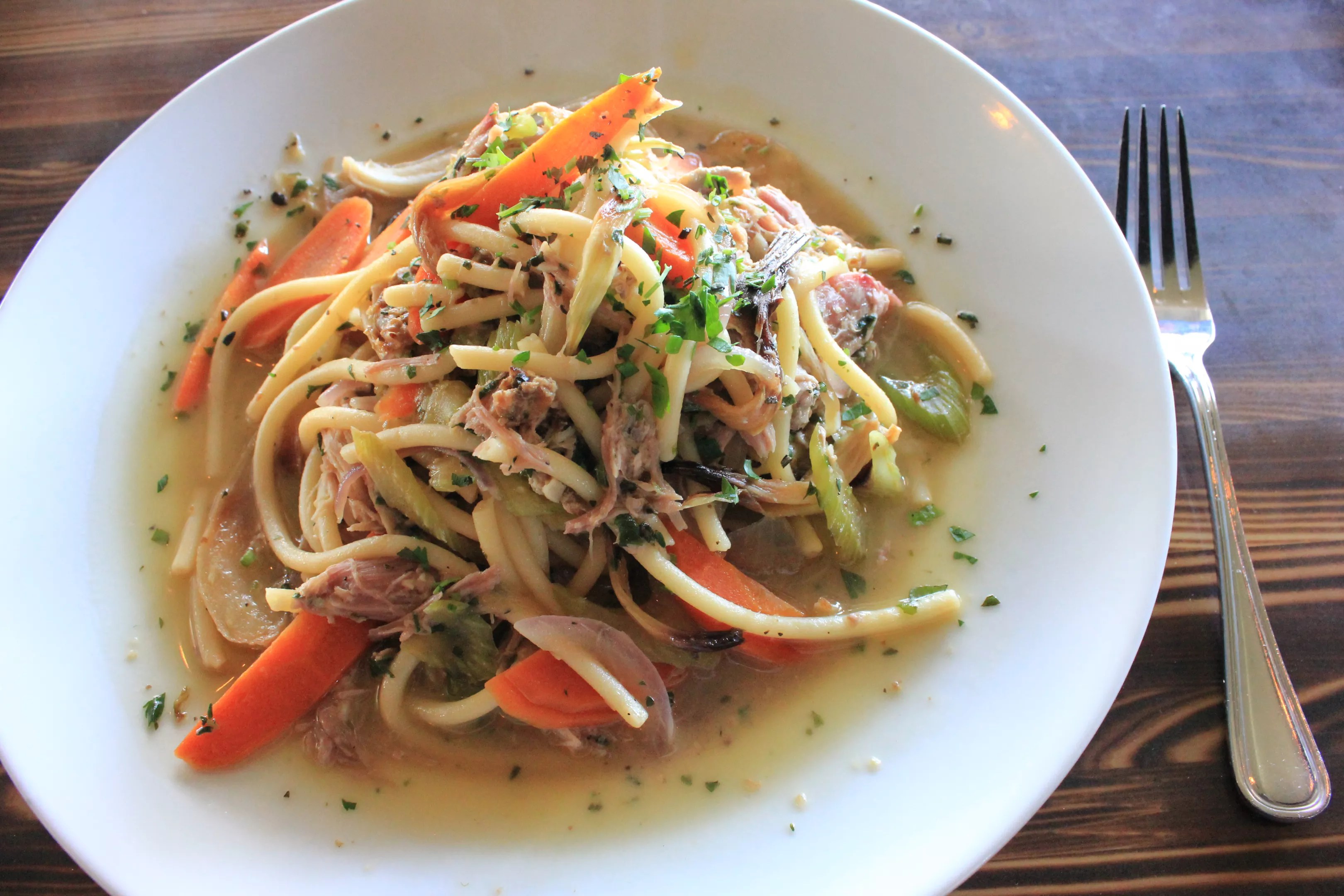 Liberty drops some barbecue creations out of left field. It all starts with bucatini, a nest of noodles sitting in a hot bath of vegetable stock. The tightly wound noodles harbor pulled pork, making for an unlikely union. Early in the cooking, pulled pork shreds get added to a mirepoix goosed with roasted fennel. Shortly after, the pot is deglazed with beer. It then gets stock, pasta, and herbs to finish. There is only a distant hint of smoke.