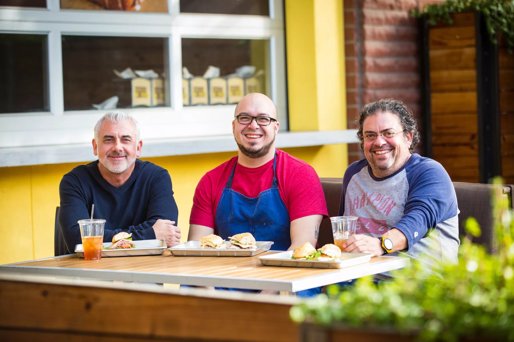 General manager Frank Schneider, chef Eric Abaloz, and owner Eliot Wexler of Nocawich, a local gourmet sandwich concept with three locations around the Valley.