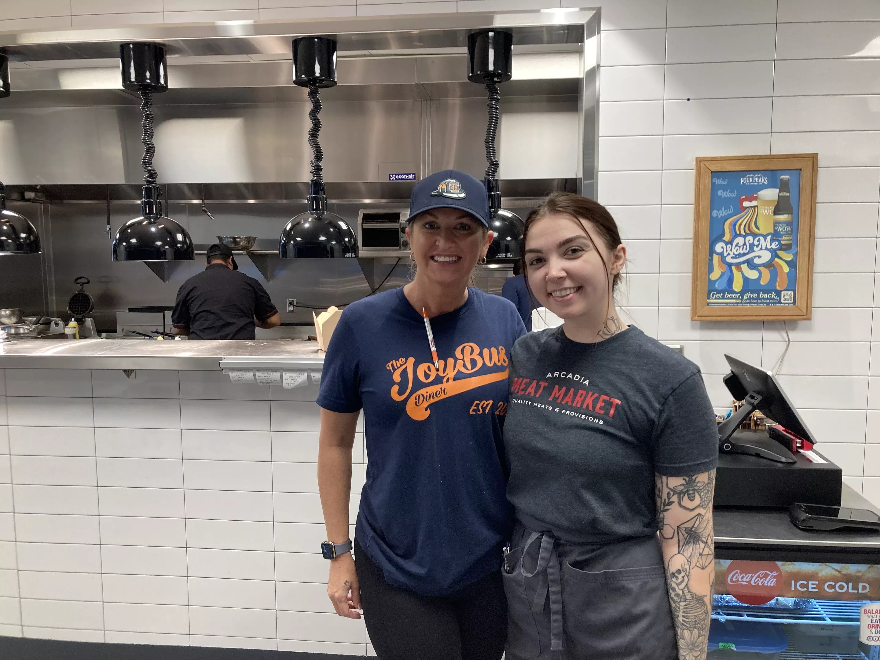 Joy Bus general manager JoAnna McCarthy and operational support specialist Morgan Raymond take care of guests in the restaurant. They both share a strong personal connection to the organization’s mission.