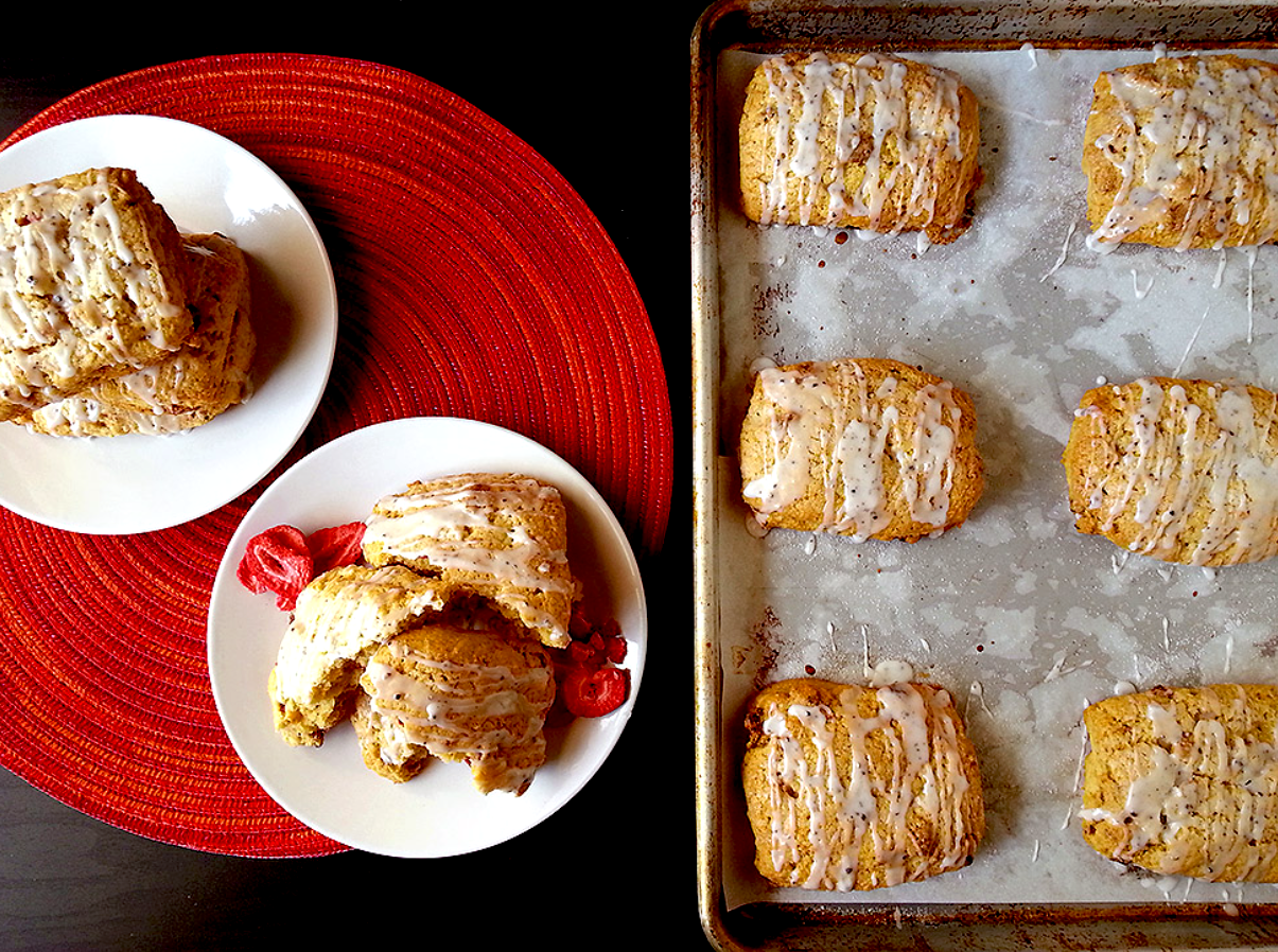 1. Whisk all icing ingredients together in a medium-sized bowl until smooth. Drizzle over the cooled scones with a spoon and let set for 10 minutes before serving.
