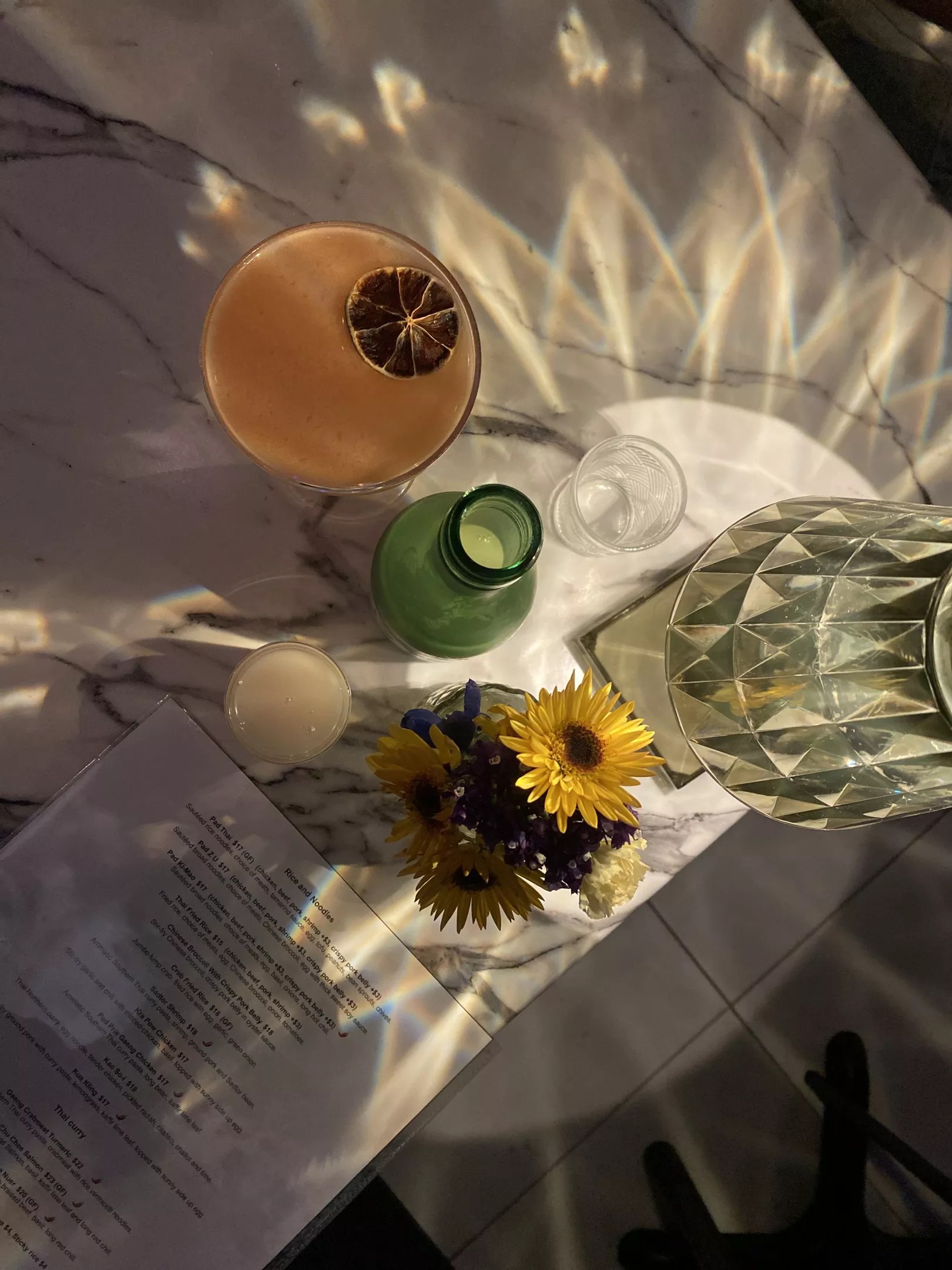 The khwam pen sakl cocktail was tropical and tangy, while the Nigori went down easily, with a hint of sweetness at the end.