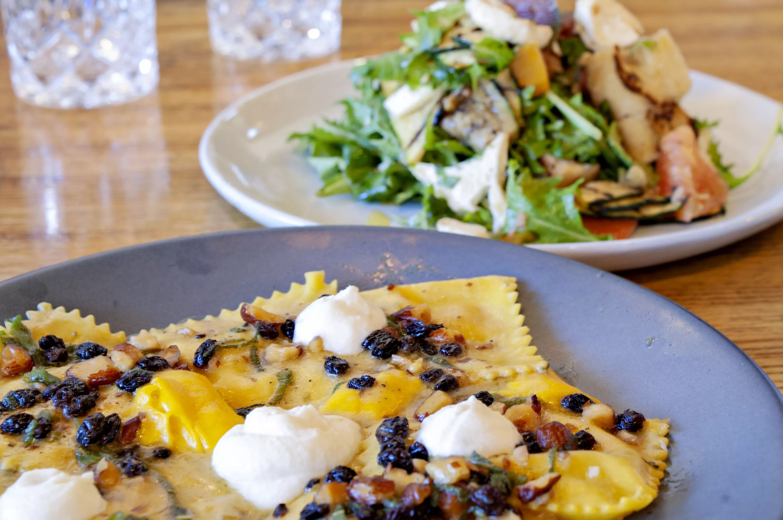 The butternut squash-filled agnolotti, with truffled panzanella in background, is one of the intriguing pastas at Parma.