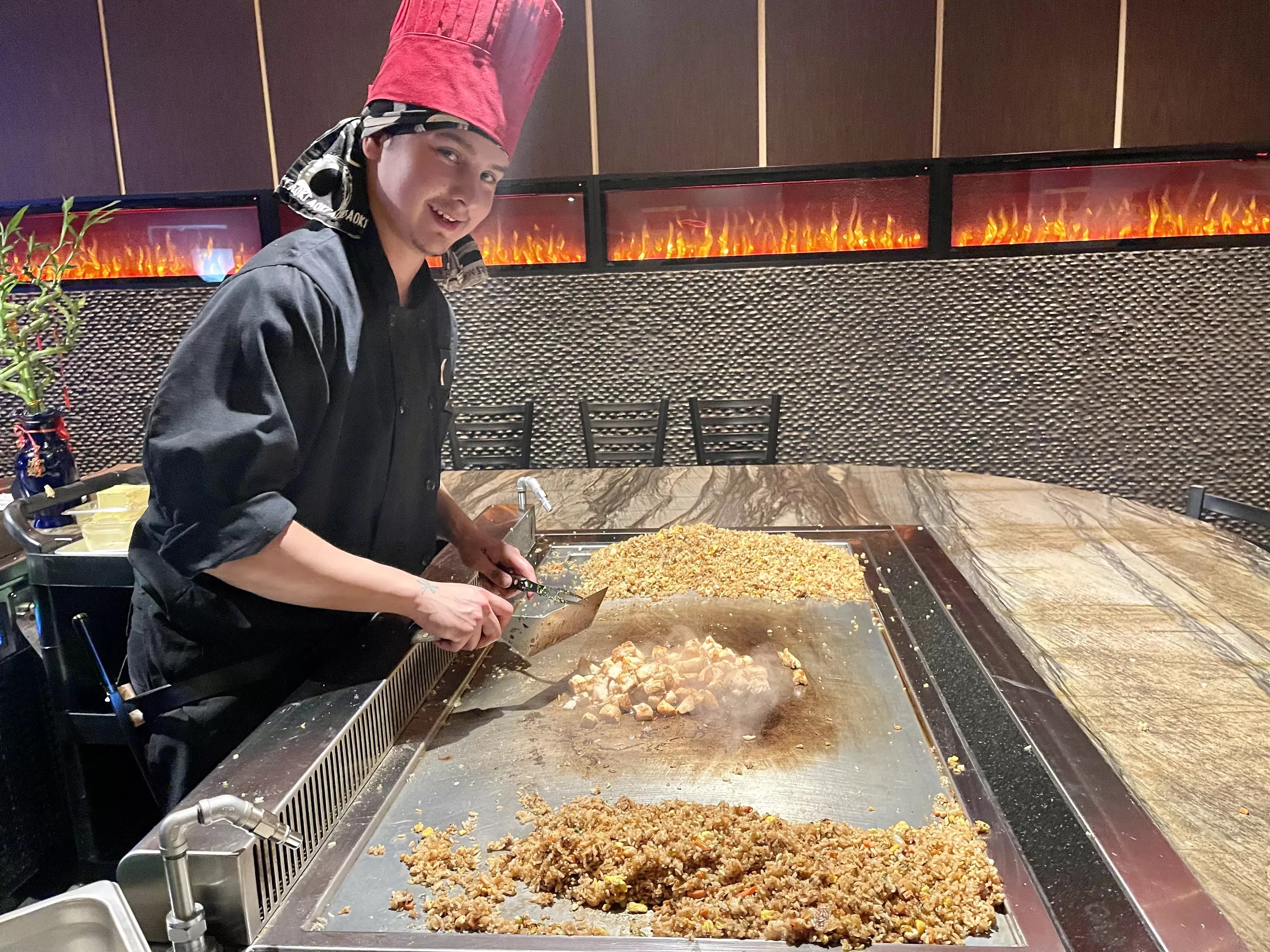 At Kasai, each table gets its own chef who cooks their dinner on a tabletop iron grill or teppan.