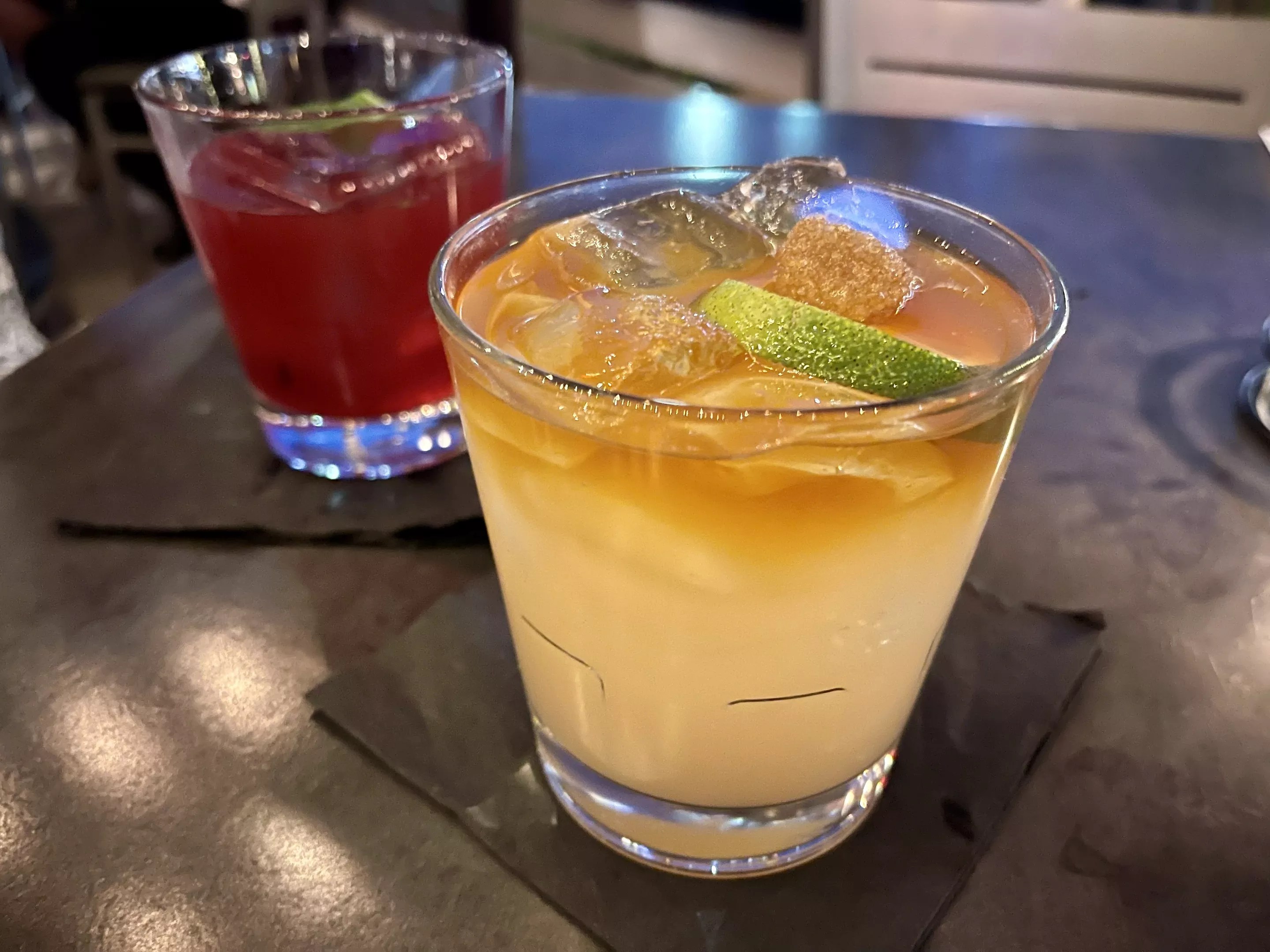 The Kasai-Tai (right) is a boozy tipple made with Bacardi rum, almond liqueur, orange liqueur, pineapple puree, fresh lime and a Myers’s rum float. It is garnished with a flaming sugar cube.