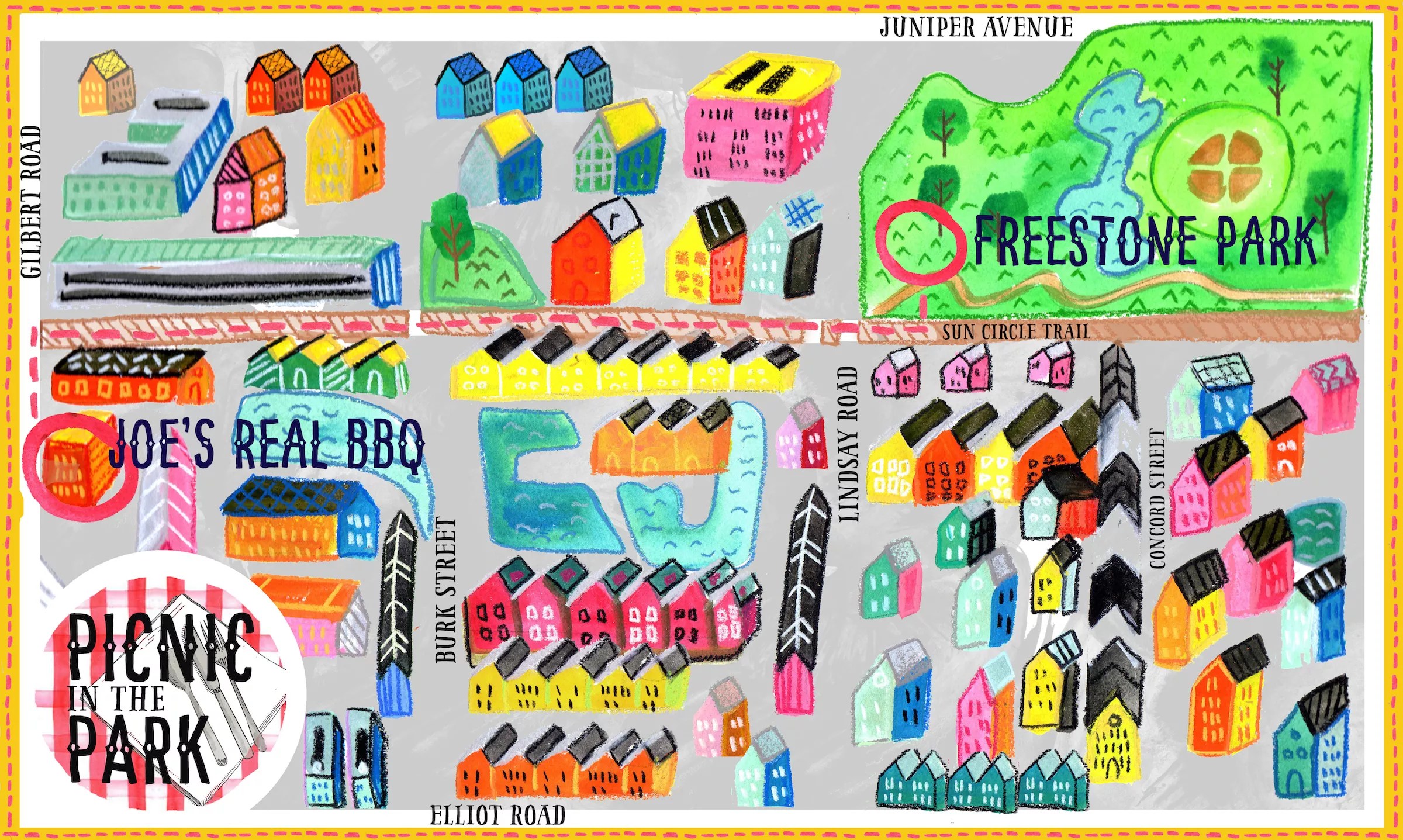 The park: Freestone Park, 1.1 miles, about a 22-minute walk (the longest walk, but if you decide to drive, eating outside still counts as connecting with nature), 1045 East Juniper Avenue, Gilbert