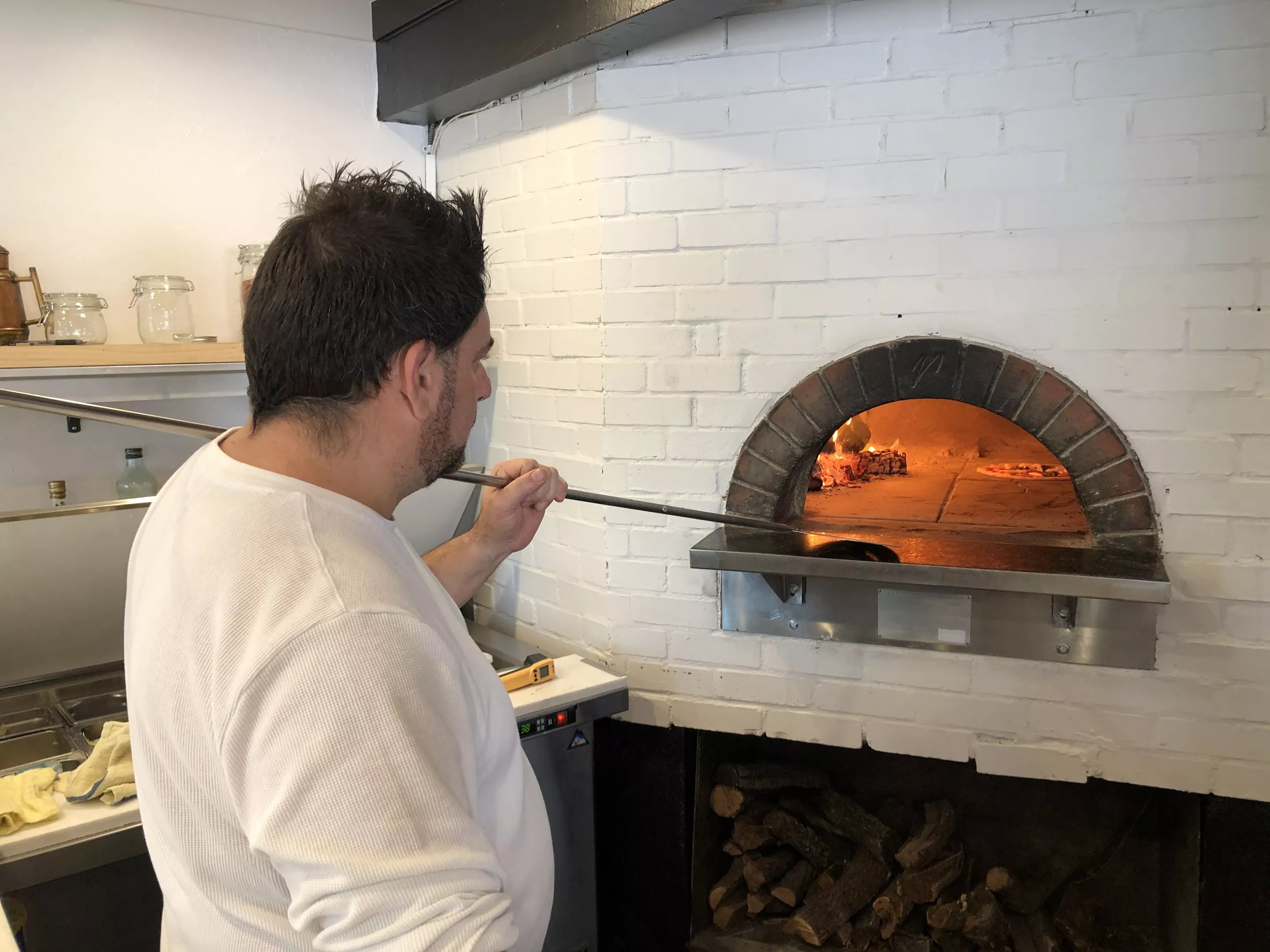Chef Gio Osso probes for doneness at Pizzeria Virtù.