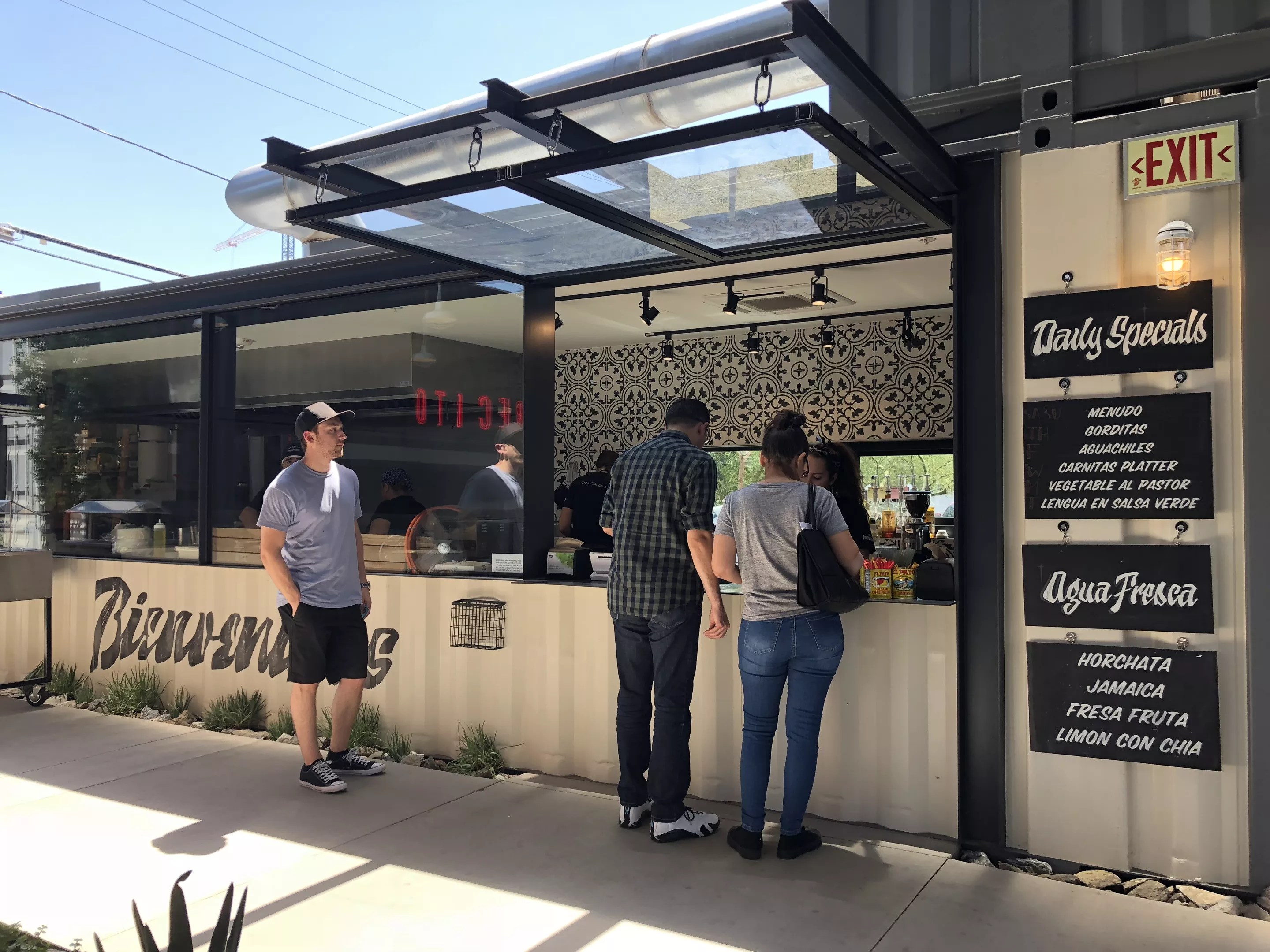 The early lunch crowd at the shipping container housing Provecho.