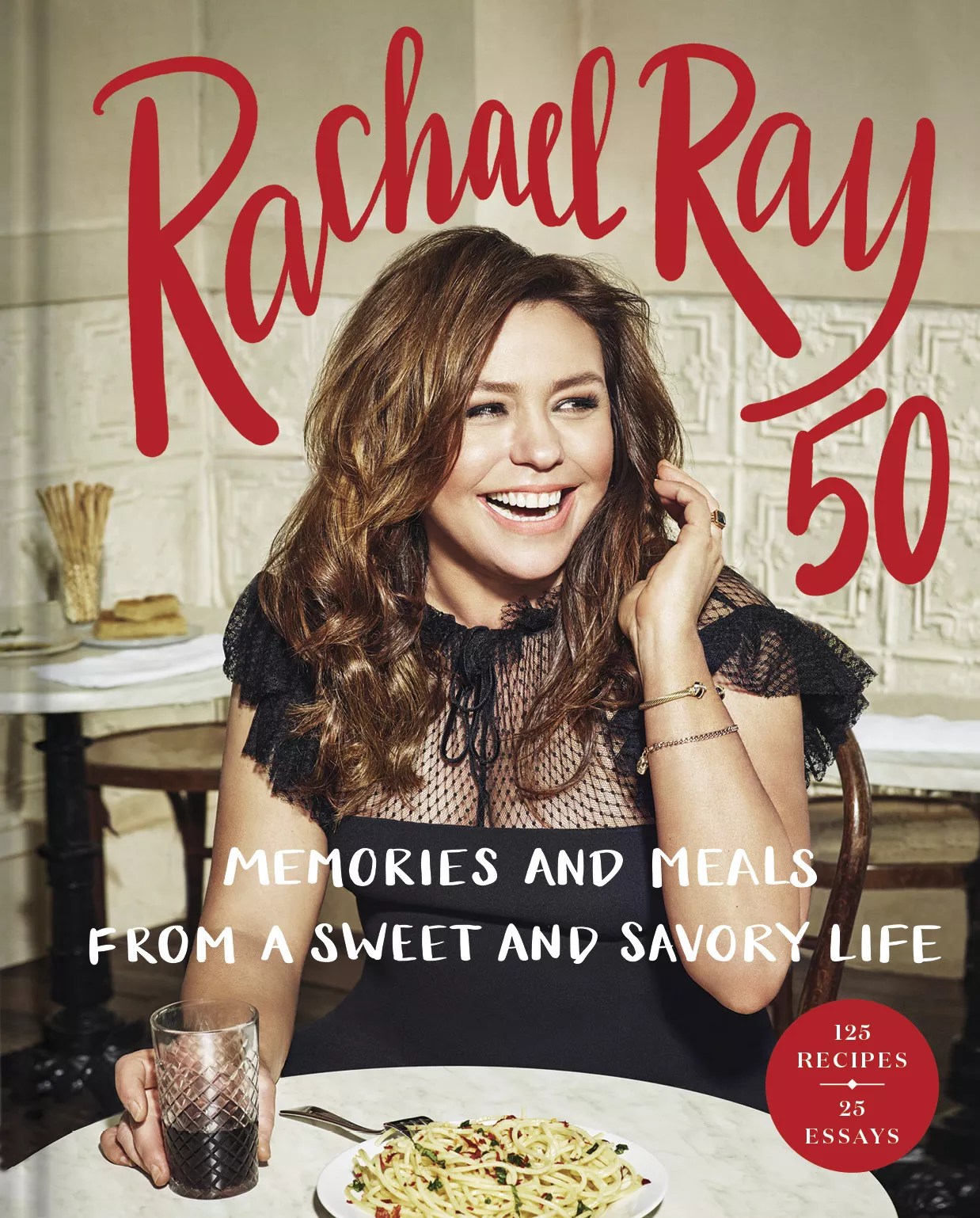 Rachael Ray 50: Memories and Meals from a Sweet and Savory Life: A Cookbook is a collection of 25 personal essays and more than 125 recipes. It