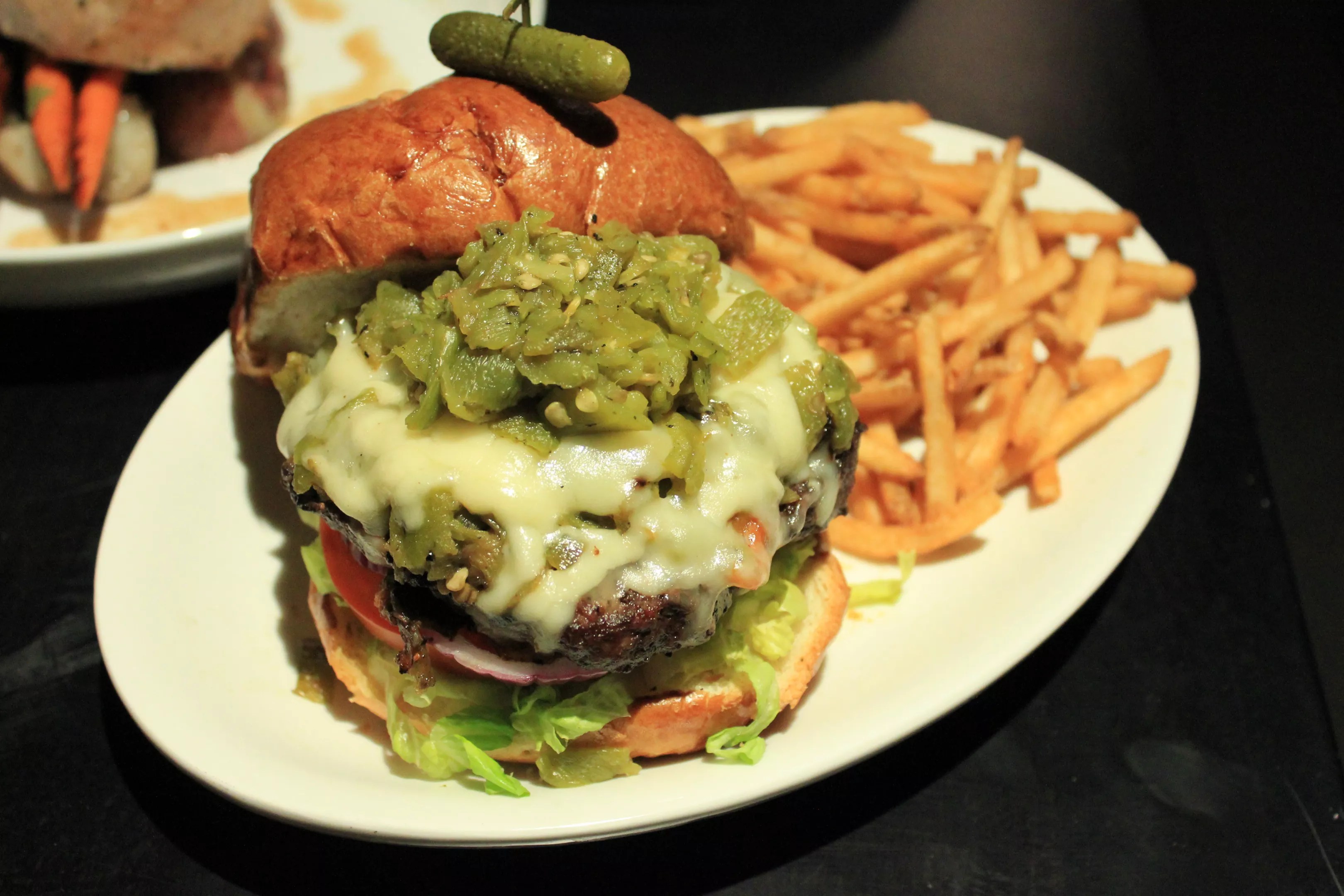 Cheeseburger with green chile.