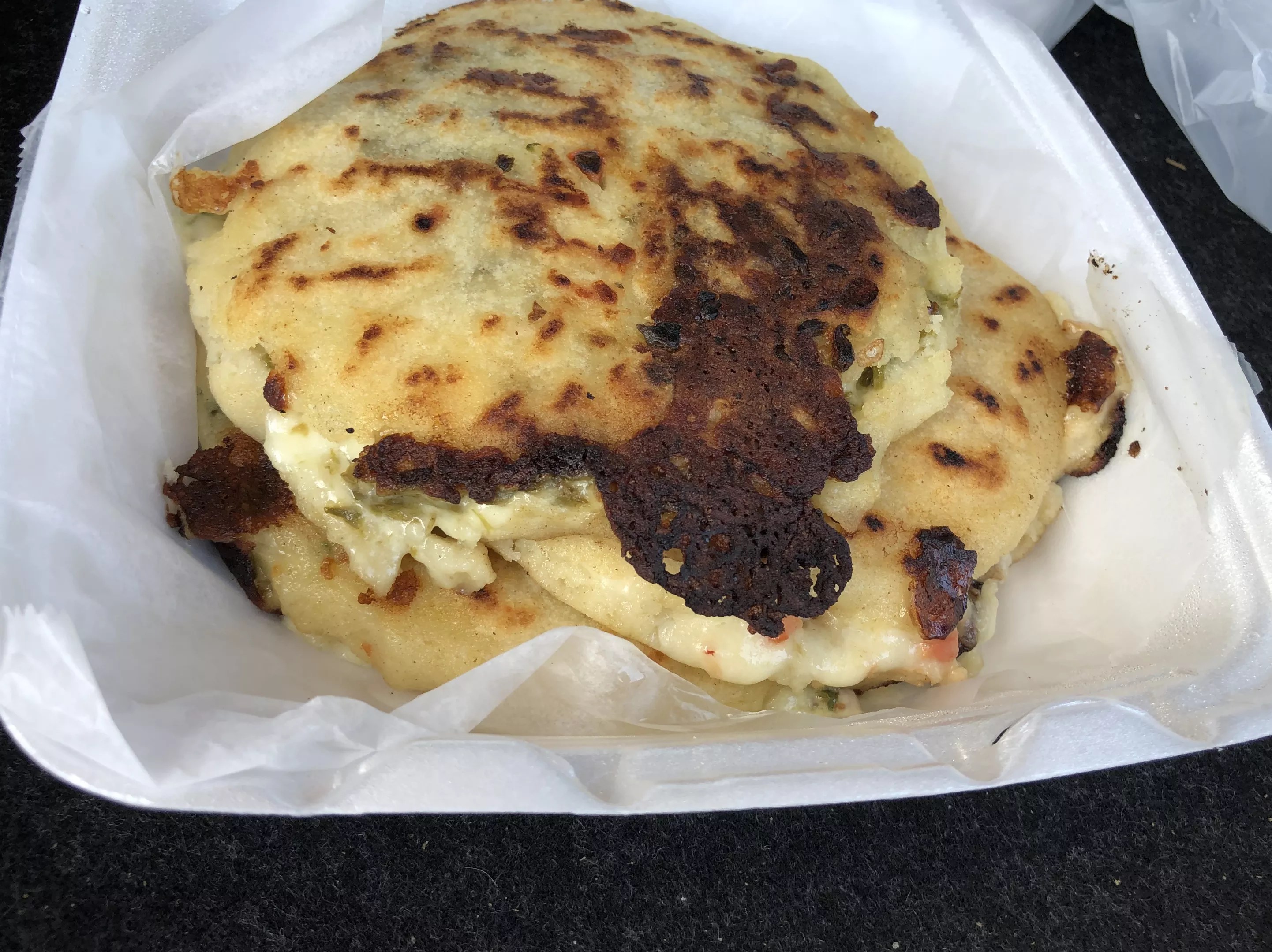 Listen, I’m going to make a weird suggestion, but we live in weird times. These pupusas are at their absolute peak the moment you take your to-go bag to your car. They lose a critical scintilla of lacy-pillowy bite as they slumber in Styrofoam. So honestly, I would steal a few perfect chomps or maybe scarf a whole pupusa before your drive home.