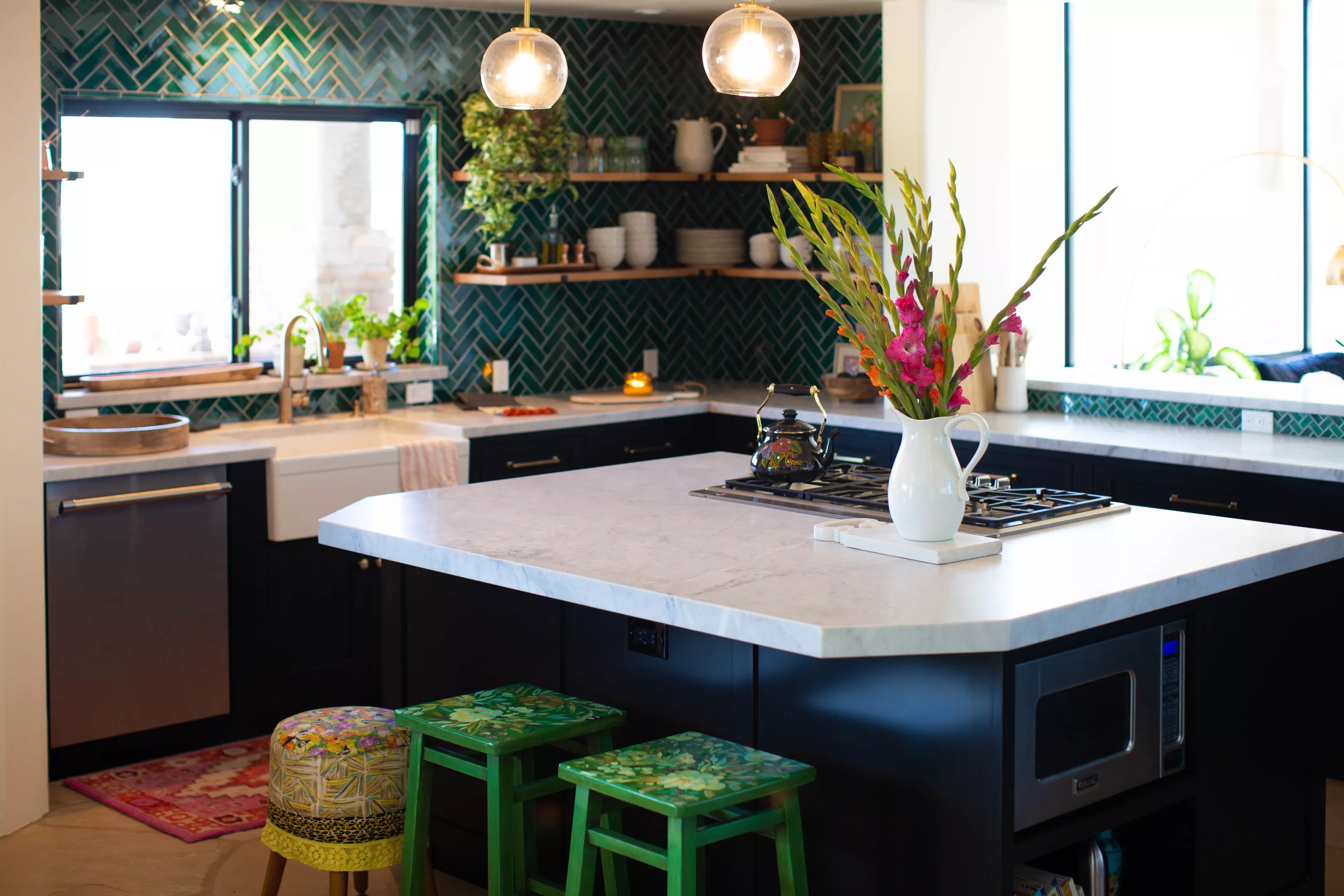 This kitchen is vibrant and unique while also feeling welcoming and familiar.