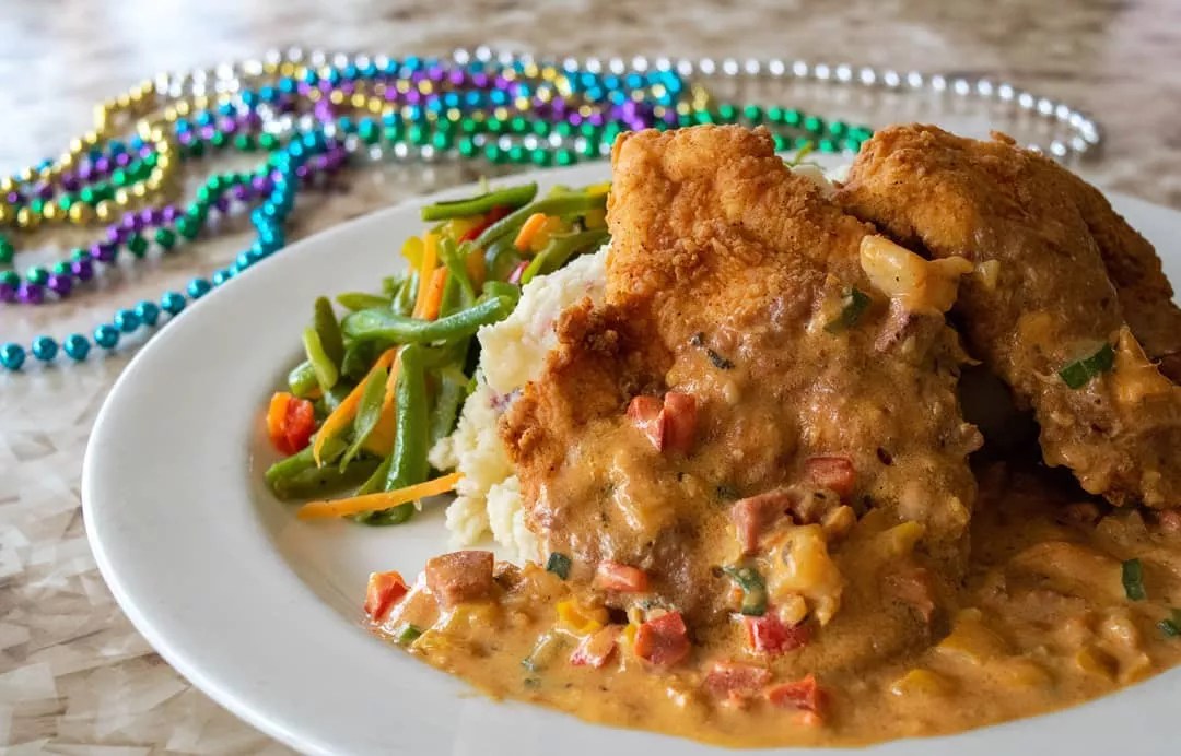 Mardi Gras chicken is just one of the New Orleans-style dishes on Lucille Smokehouse Bar-B-Que’s menu.