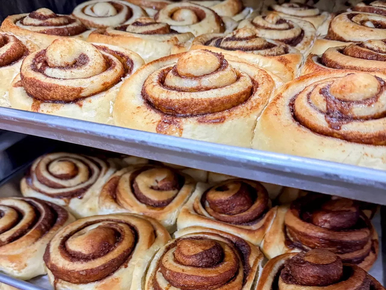 “We use Italian flour labeled as pizza flour,” White explains. This flour gives the rolls their tender texture without the dry or bread-like feel of standard cinnamon rolls. The interior stays moist and gooey while the outer edges turn golden and slightly crisp.