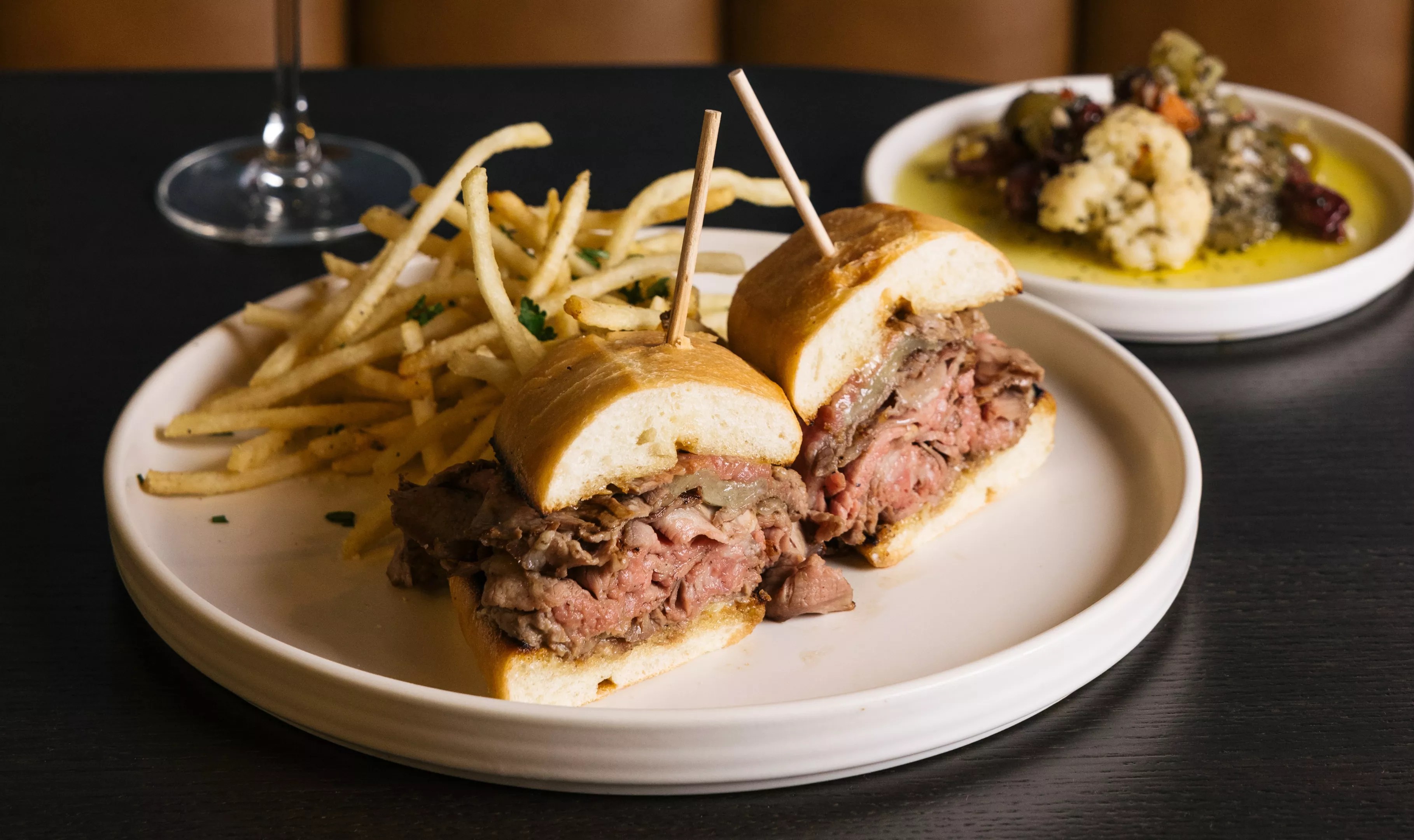 At Saint Urban, the dish starts with a marinated Santa Maria-style trip tip roast. The succulent meat can be served as a sandwich on Noble bread with aged white cheddar, steak sauce and garlic aioli, or as an entree.