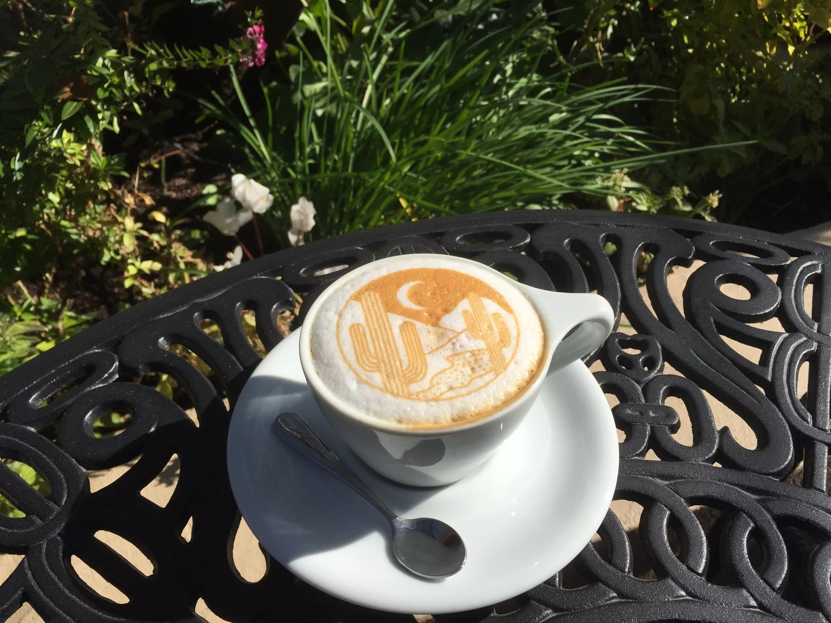 Latte with cactus art printed by a 3-D printer at Schmooze in Scottsdale.