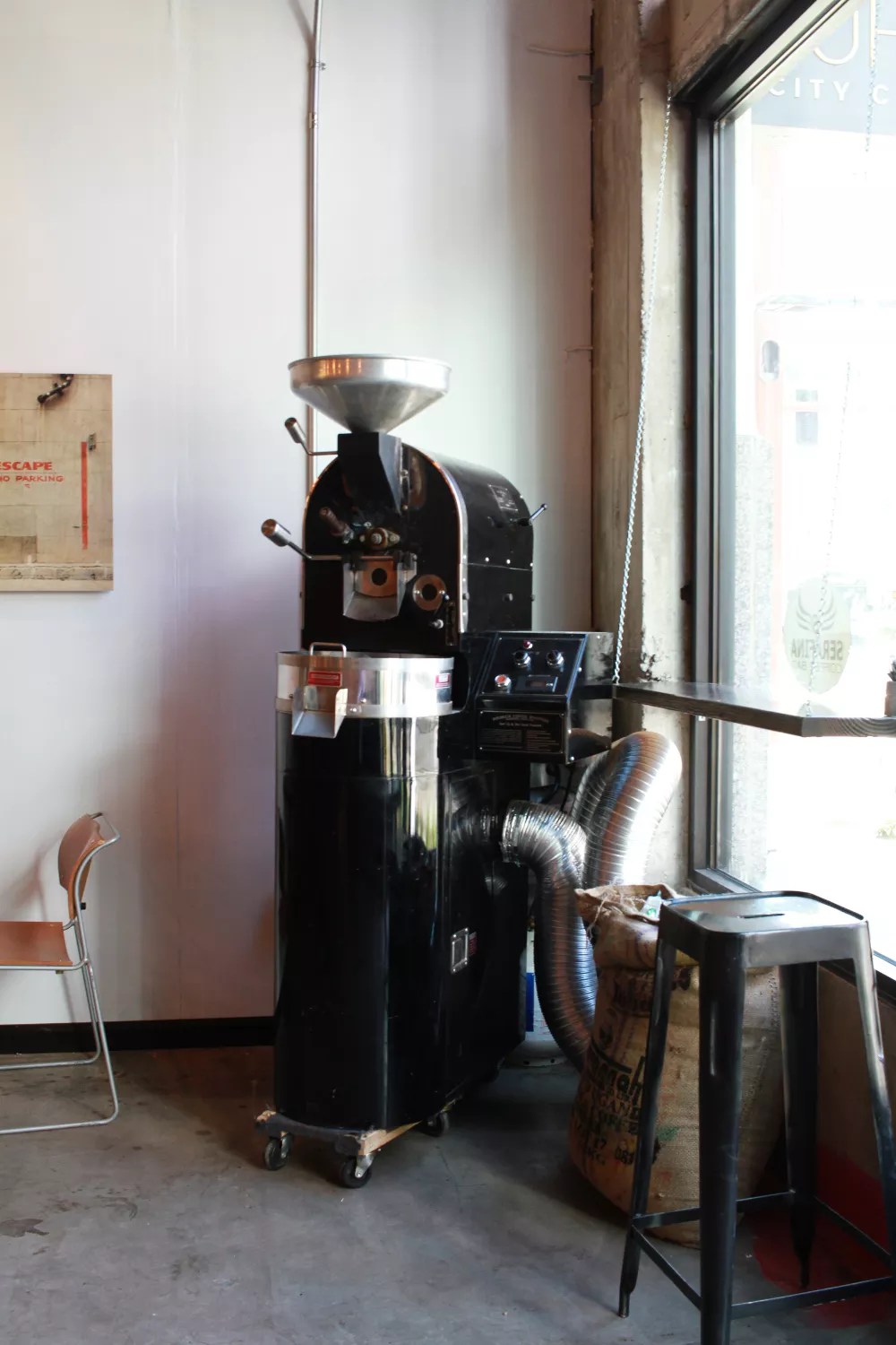 The roaster is tucked under century-old windows and behind a wooden table. Yes, it’s inside his new coffee shop, and it’s the coffee shop’s heart. It roasts seven pounds of coffee beans at a time. This is unusual for a metro Phoenix coffee shop. Many cafes can lay a claim to locally roasted coffee, but how many are brewing coffee beans that have been roasted just feet away?