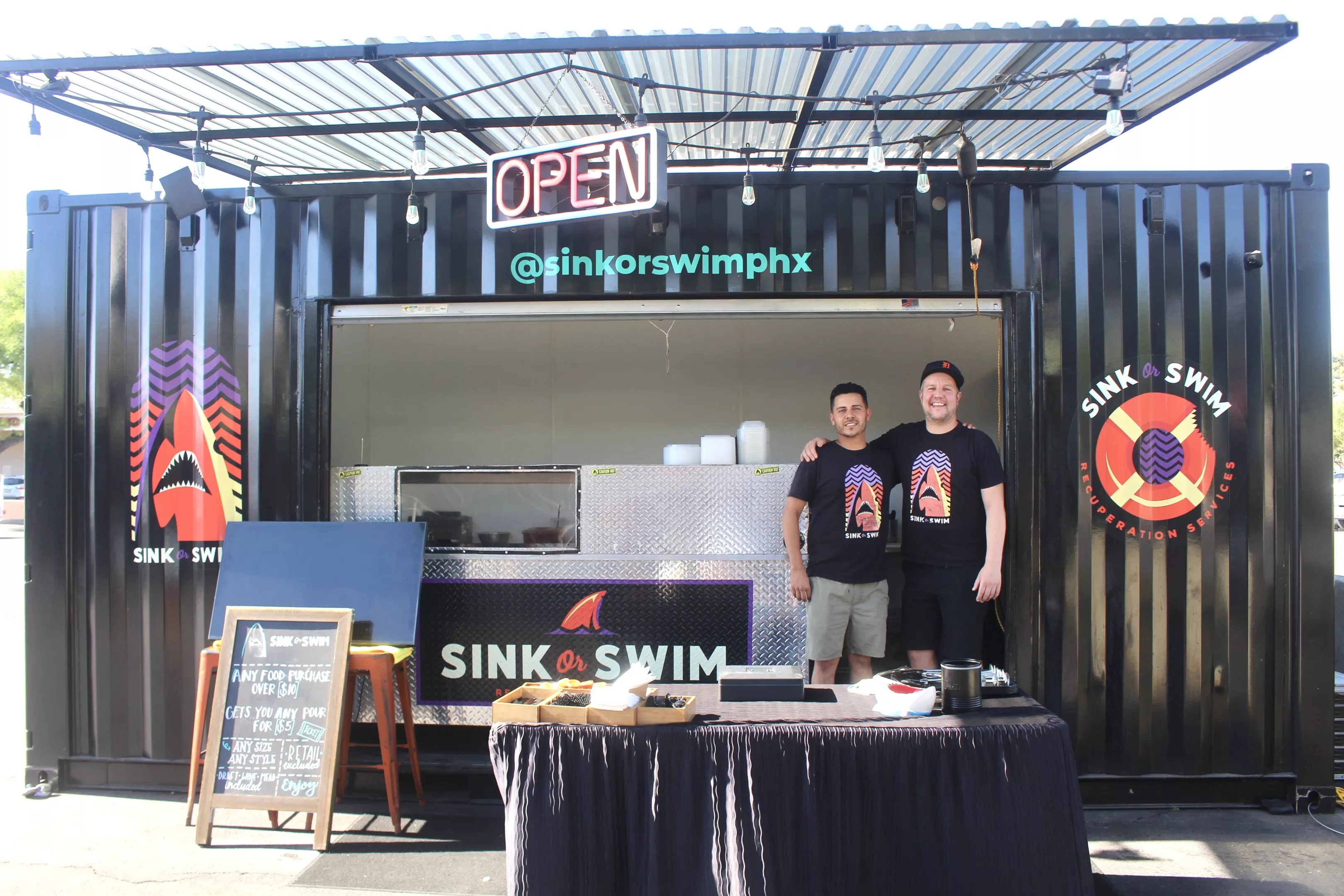 The Sink or Swim shipping container with co-owners Andrew Felix and Bryan McCarrick.
