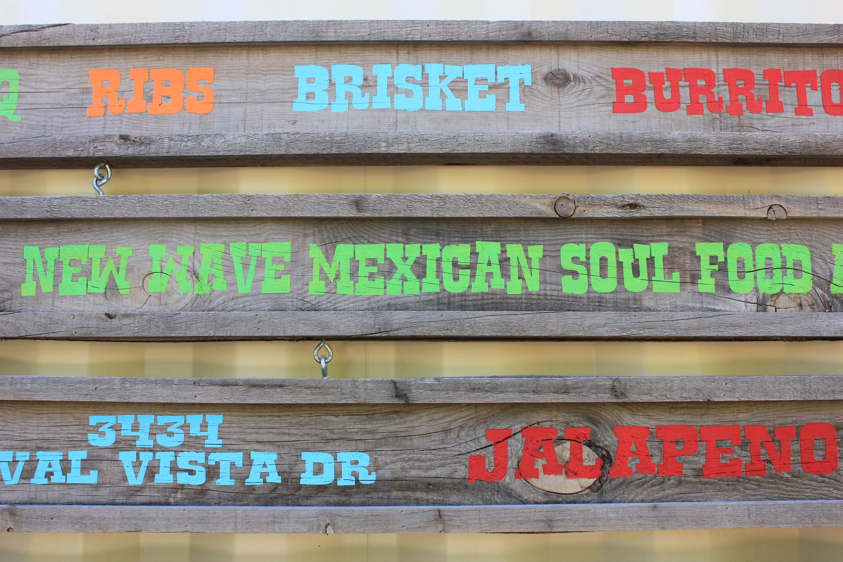 “NEW WAVE MEXICAN SOUL FOOD,” blares a lime-green sign by an orange row out back.