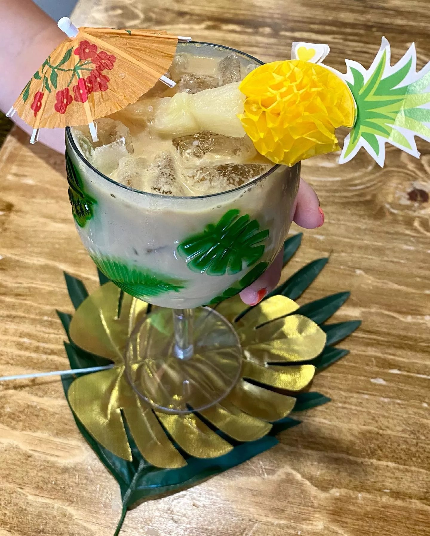 Lavender lattes are the specialty, inspired by York’s visit to actor Hugh Jackman’s Laughing Man Coffee & Tea shop in New York City. The seasonal menu currently consists of tropical concoctions like the Hula Dancer, made with a mix of brown sugar, butter, pineapple, espresso, and the customer’s choice of milk or non-dairy option. “It tastes like a pineapple upside-down cake,” York says.