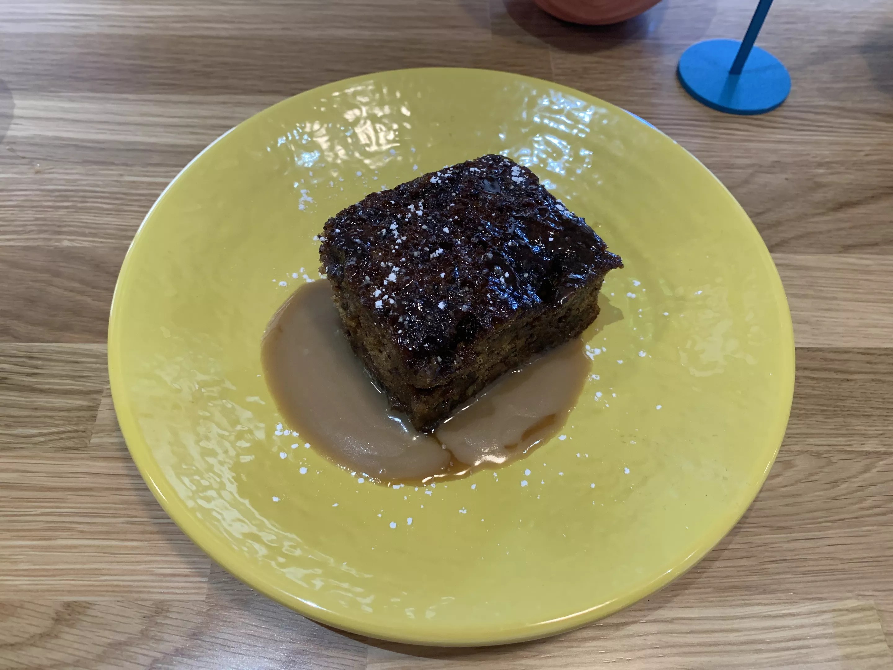 The walnut and date pudding was flavored with cloves and cinnamon; it recalled a holiday dessert, but lighter. It was accompanied by a glorious bourbon caramel sauce, golden in hue, and drizzled around the plate. If you share this dessert, ask for extra sauce, or else a fight might ensue.