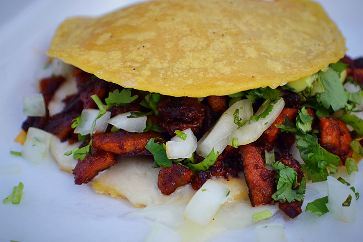 D Taco Pit is a relatively new taco truck that recently popped up in a suburban, taco-deprived corner of Laveen. You’ll find the tall, lime-green taco truck parked inside the Walmart SuperCenter parking lot, in front of the TCF Bank near the intersection of 35th and Southern avenues. “There aren’t many trucks like ours in this neighborhood,” says Saul Aguilar, D Taco Pit’s friendly host and order-taker. The menu is simple for now: Just carne asada and al pastor are available in various, sometimes cheesy, configurations. A bestseller is the al pastor mulita, a sandwiched taco oozing melted cheese and brimming with the pork’s subtly sweet-spicy chile marinade. Carne asada, meanwhile, involves flavorful, aggressively seasoned beef, chopped into bite-size hunks and drizzled with a lovely guacamole salsa to cut the salt. Tacos aside, D Taco Pit also sells thick, meat-stuffed quesadillas, enormous nacho platters, and vampiros. It’s a menu that’s familiar and simple, but which never fails to thrill when it’s done well.
