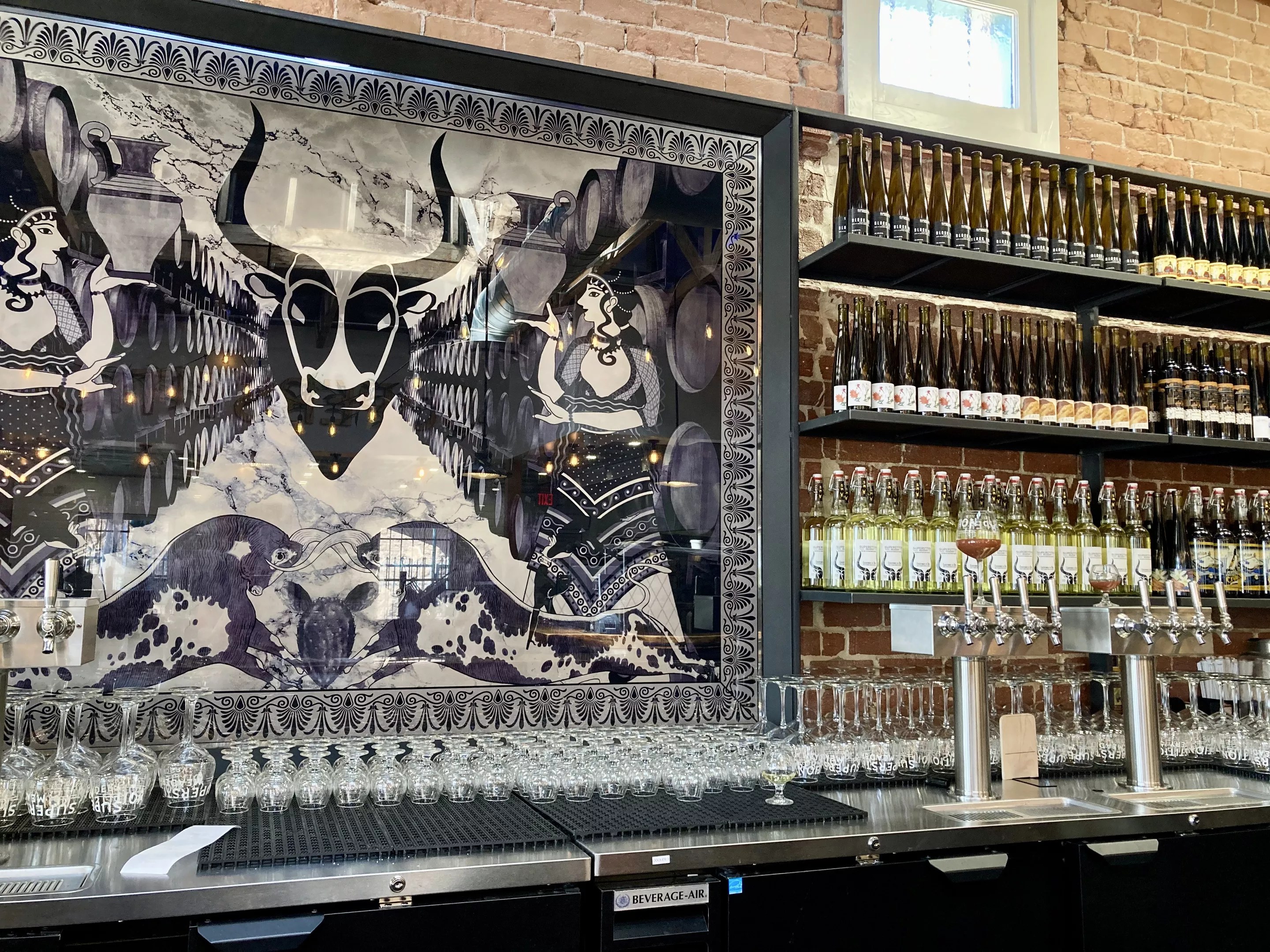Hundreds of bottles of mead, cider, etc. are lined up behind the bar at Superstition Downtown.