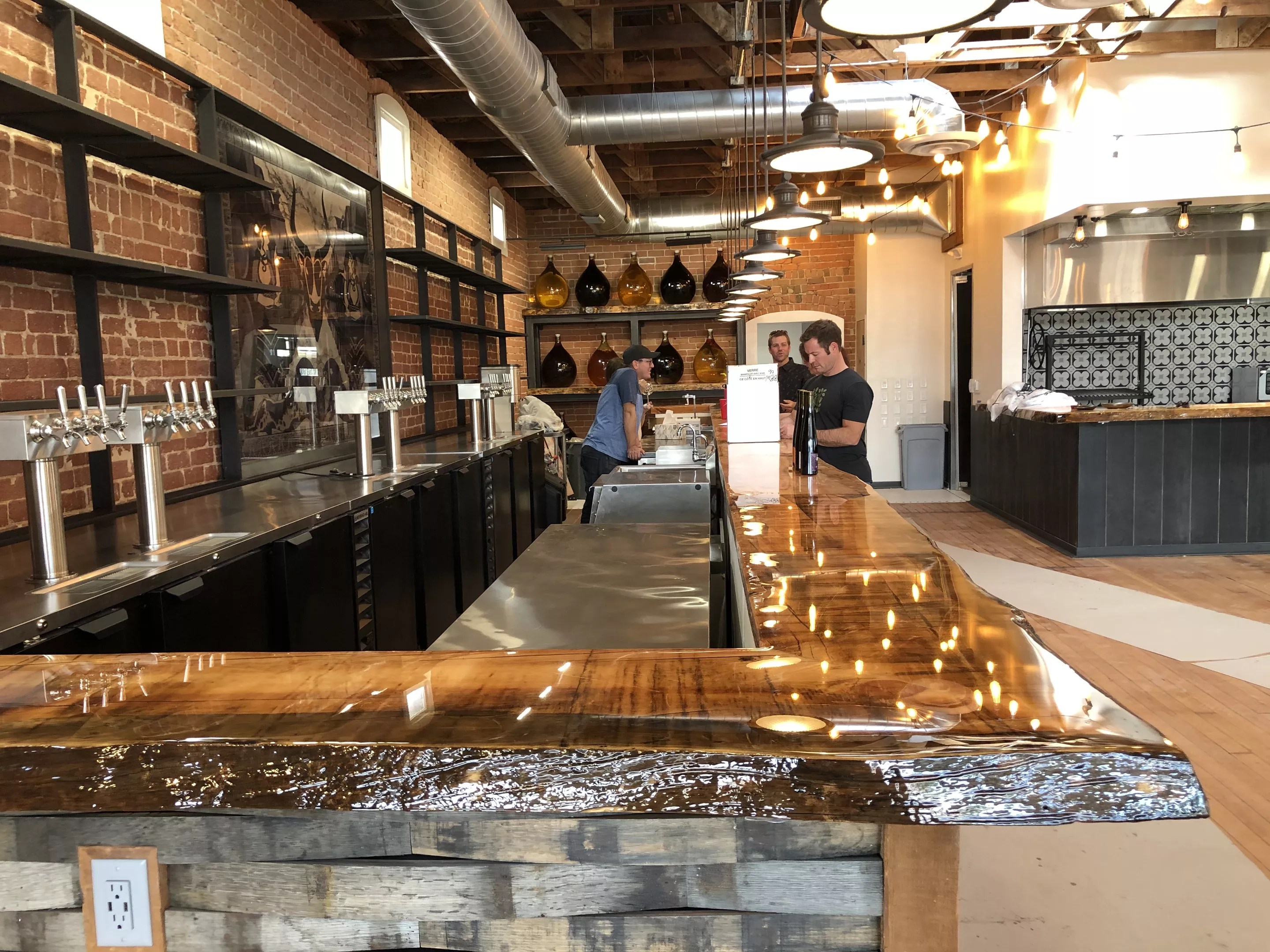Superstition Downtown will seat some 120 people, feature a wide-ranging mead-and-food pairing program, and have some 35 Superstition beverages when the doors open. Some of these will run through the 24 taps of the long, polished, L-shaped bar topped with wood salvaged from the splintery wake of a west-of-Flagstaff tornado. Most of the 24 taps will dispense meads, but some will pour ciders. (One Superstition cider, Blueberry Spaceship Box, is the world’s top-rated flavored cider on RateBeer.)