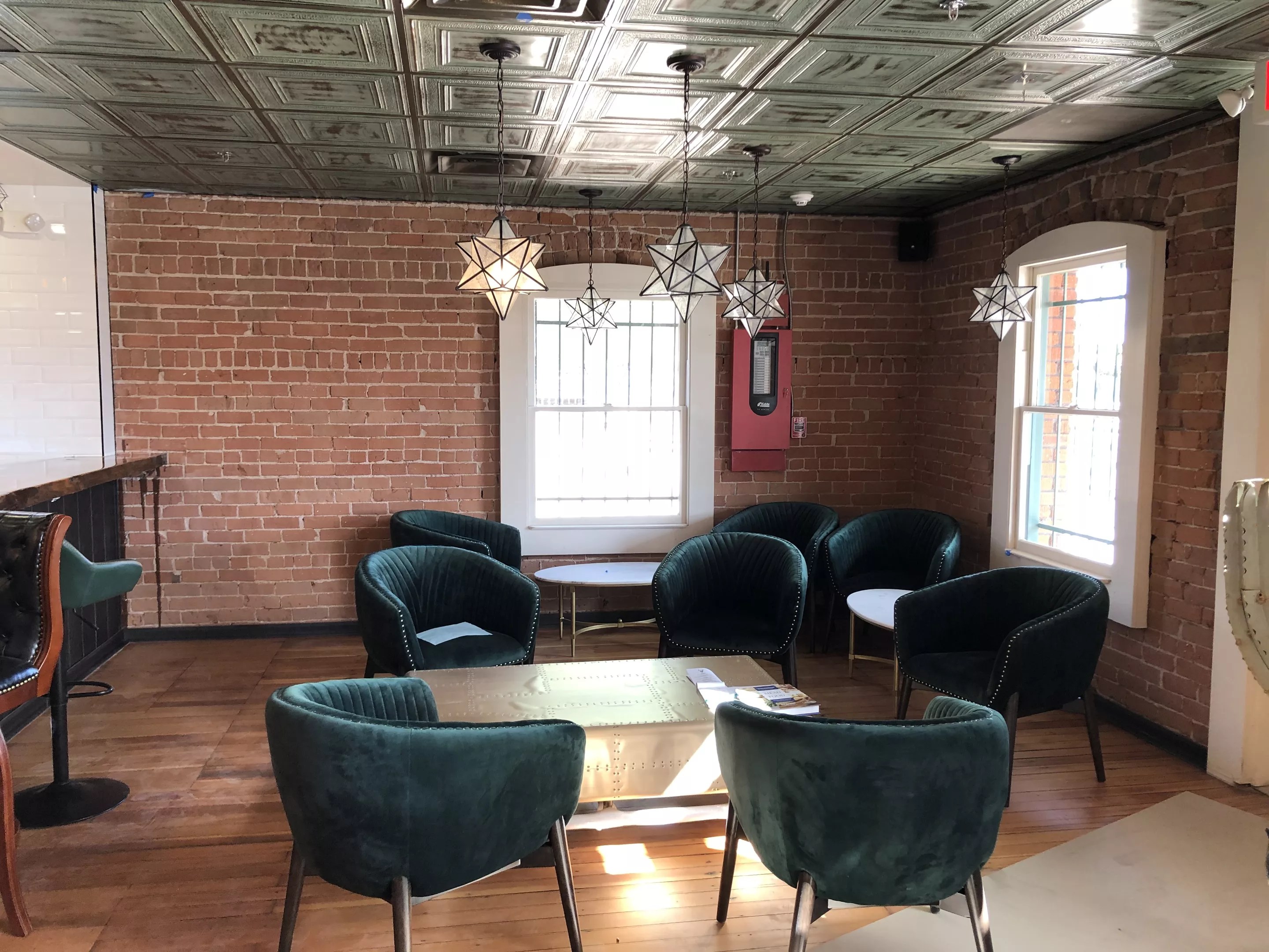 The new downtown drinkery has a pitched ceiling of exposed wood and rafters and, over an open kitchen, a lower overhang of ancient-looking-but-new tin. There is a lounge area of upholstered chairs and an ample patio outside. The wide-open kitchen will turn out a full restaurant menu, much from a wood-fired grill.