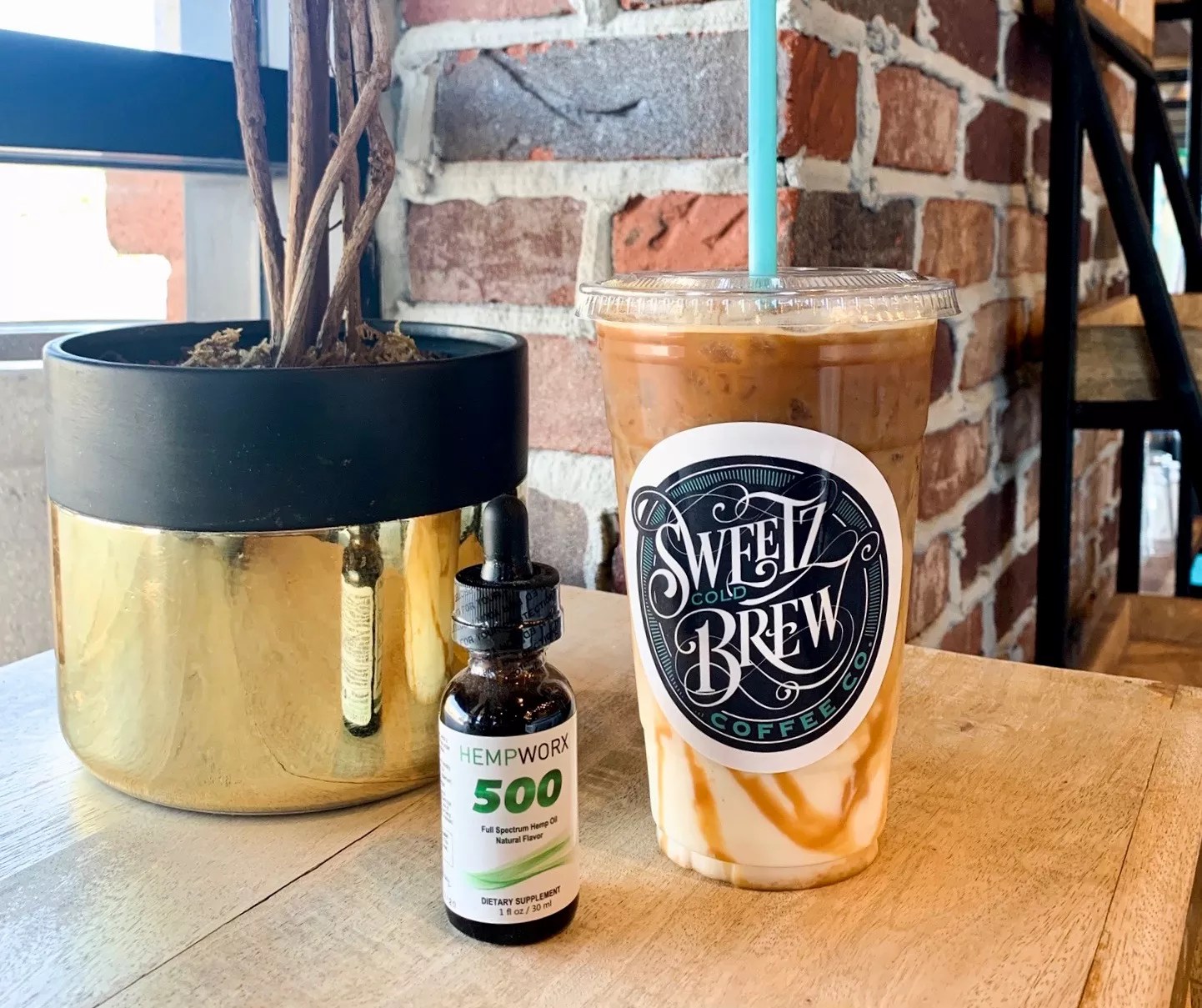 Sweetz uses the Nevada-based HempWorx because, as Barton says, it’s one of the original CBD oil companies. She likes how there’s not a lot of filler in it. She uses the natural, THC-free flavor, which Barton says has an “earthy” smell and taste. She prefers the earthiness, but customers can add whatever flavored syrups they want to a drink to alter the taste.