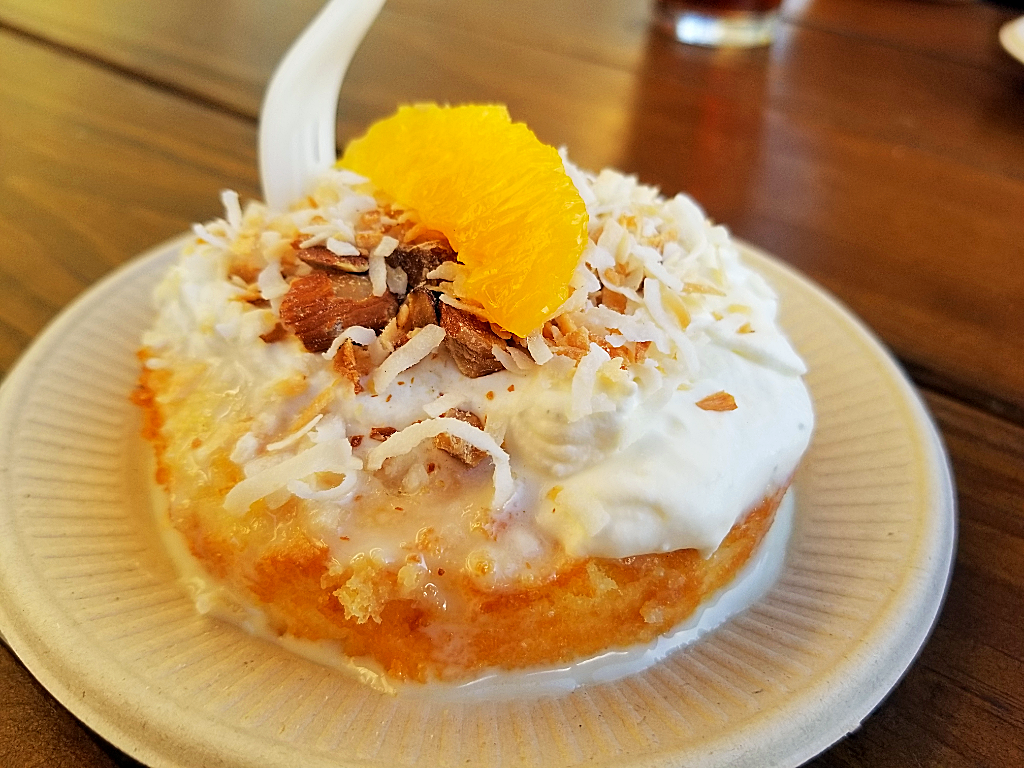 For dessert, there’s tres leches cake, a bright, dainty-looking confection adorned with toasted coconut, almonds, and fresh citrus. Whipped cream melts deliciously into the cake. It’s a lovely dessert, although the middle portion of my cake was a little stiff and dry. How satisfied you are with this dessert will hinge on how devoted you are to the idea that a tres leches cake should be positively saturated in sweet milk.