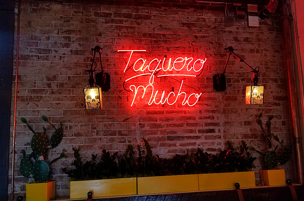 The Taco Chelo dining room is a bespoke marvel of color and Mexican-inspired motifs. There’s a lovely turquoise bar, trimmed with Day of the Dead-inspired calavera tile work; a mass of pendant lights hanging from the rafters; and a stylish, on-trend neon sign mounted onto an artfully faded brick wall. It’s a vibrant space that feels like it was designed, for better or worse, to be showcased on Instagram.