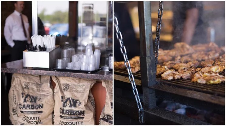While thin cuts of steak can be started and finished in a matter of minutes, chicken takes longer on the mesquite grill.