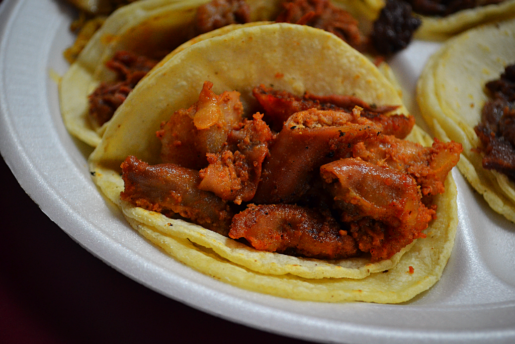 The steady crowds are not surprising; there is much to love about the taco scene at La Fiesta. You’ll usually find nine prepared meats on the menu. Options include carne asada, al pastor, pollo, tripas, lengua, cabeza, carnitas, buche, and chicharrón.