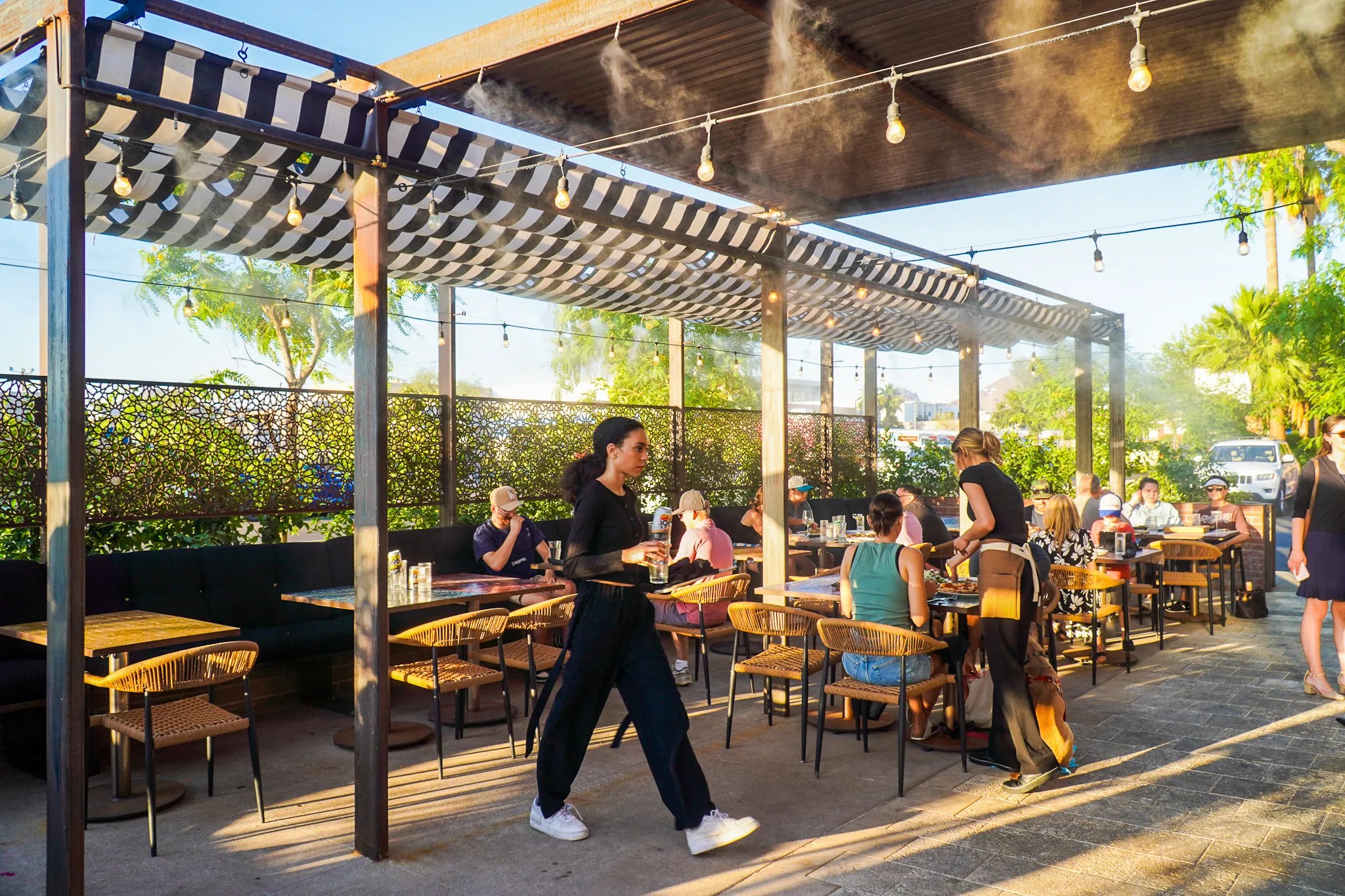 On select nights, dinner guests can cuddle and coo over cute adoptable puppies on the patio, where the pups play and pose from inside a fenced area while a small team of knowledgeable Almost There Rescue volunteers keep watch. As operations ramp up, the team hopes to bring out puppies every night at 6 p.m.