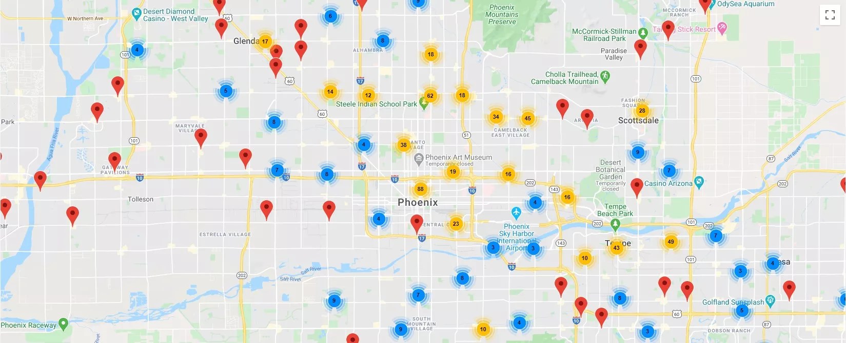 But don’t get it twisted, Takeout COVID Phoenix is not where you order food for pickup or delivery. Users (i.e. you) open the interactive map of Phoenix restaurants and bars and use filters to find spots offering food or beer or meal kits. A delivery filter is also included.