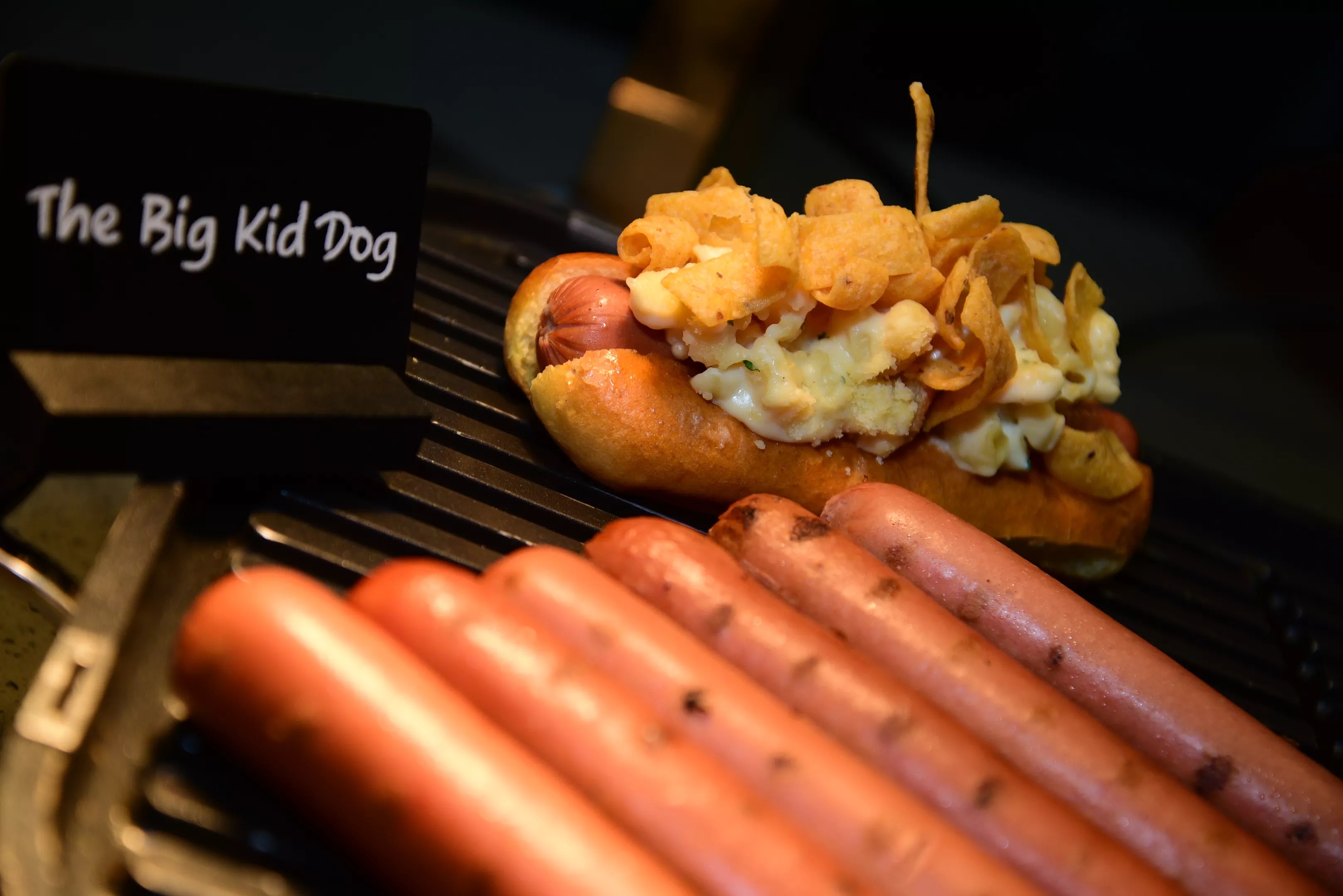 The Big Kid Dog is topped with mac and cheese and Fritos.
