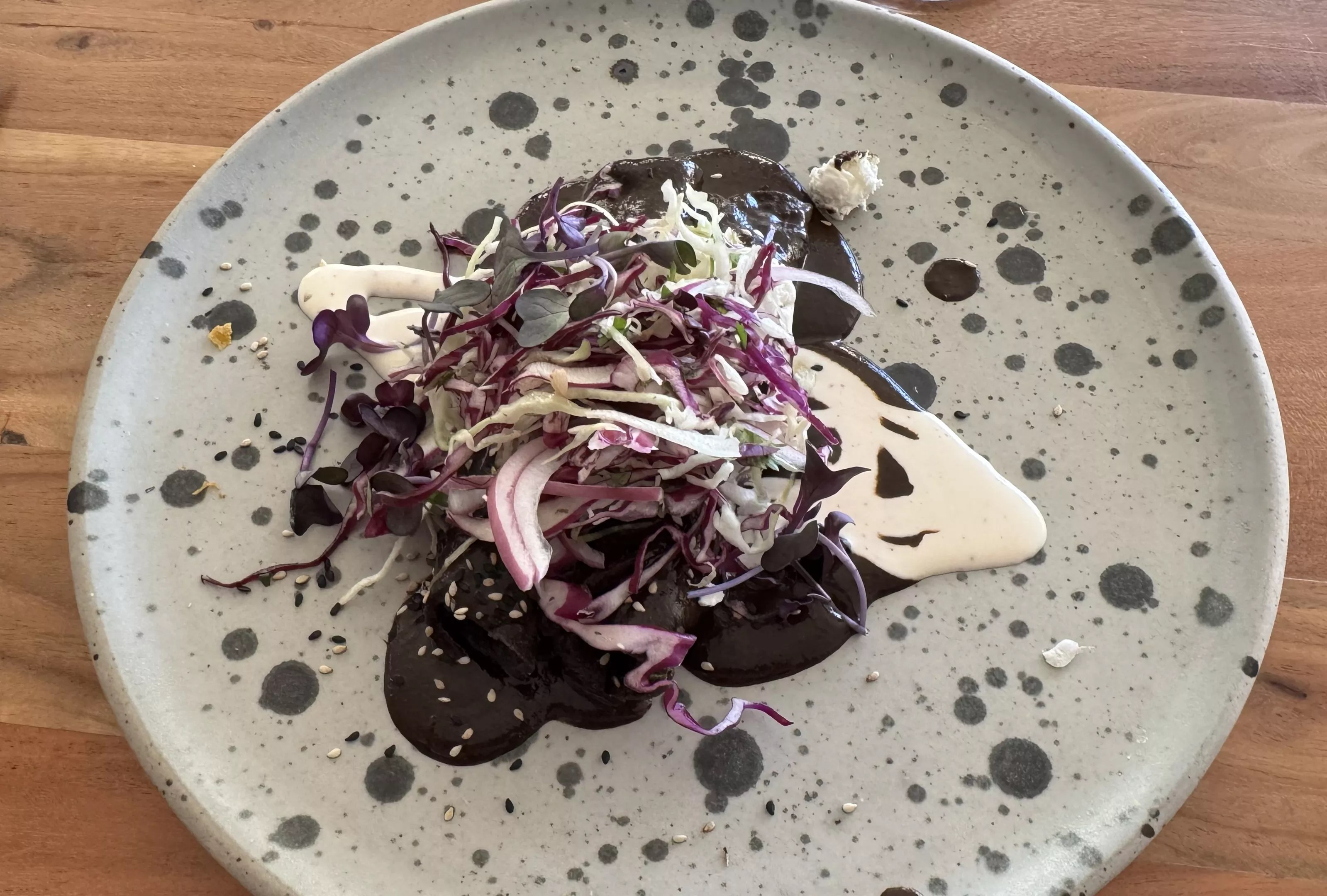 One of our tablemates quips that he’s trying to reserve his top score. When the mole flauta arrives during the third course, he concedes this is the moment.
